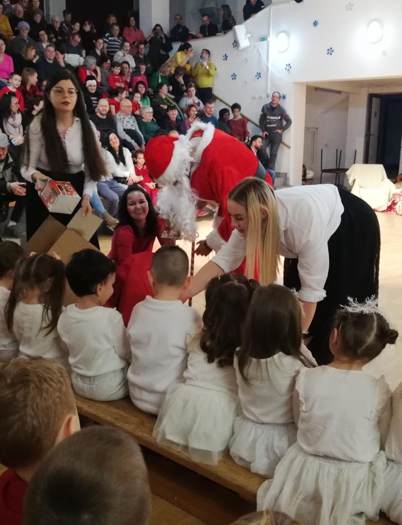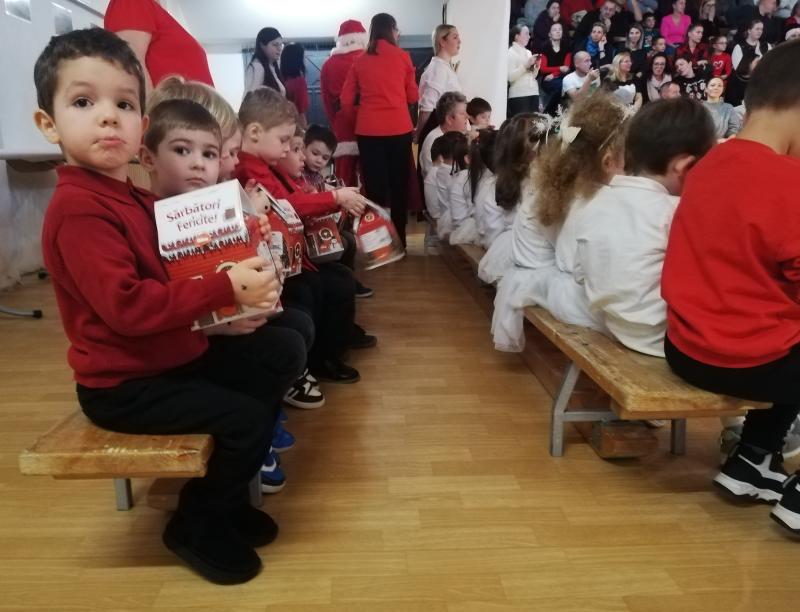 December 5-e kivételes nap volt. Talán az első az életükben, mikor szerepeltek, az első, amire egyszer emlékeznek. Aztán megérkeztek a középsősök, a vörös ruhások. Vékony kis csuklójukon arany csengő. Végül mindenféle zöldben jöttek a nagycsoportosok. Énekeltek. Együtt. Magyarul, románul, angolul, hogy mindenki érezze, neki, hozzá szólnak a gyermekszavak. Az óvodások odaintegettek anyának, apának, mamának, papának. Őszinte, emberi gesztus... Mosolyogtak (kezükön a csengők csilingeltek. Arcukra a könny rászáradt. Elbűvölte őket a fény, az embertömeg). Lépdeltek, pörögtek, forogtak. Szent Miklós távolról, a karosszékből figyelte őket. Ügyesen táncoltak. Jók voltak (egész évben többnyire. Olykor, néha persze csintalanok. De így kerek egy gyerek.)