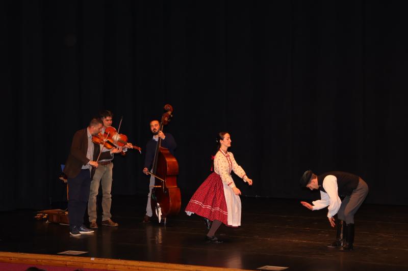 A foglalkozás keretében egyszerre került sor népi hangszerekkel való közelebbi megismerkedésre és különböző tájegységek táncainak, többek között rábaközi, mezőségi és kalotaszegi néptáncok, illetve verbunkos bemutatására.