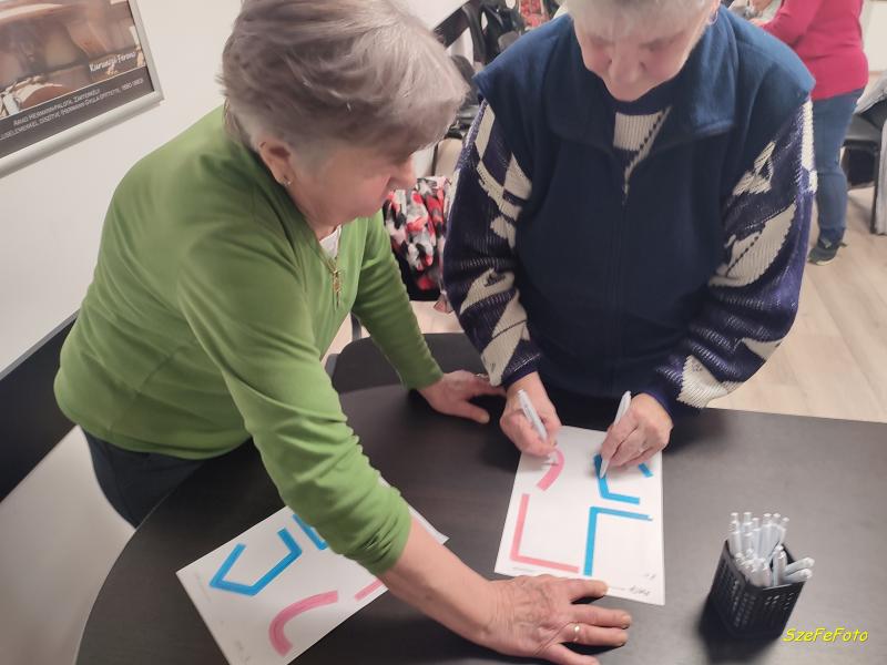 Erre a kapcsolatra szeptember óta vártak a klubot látogatók. Kedd délutánonként, (az iskolai 4. osztályos foglalkozásokat követően,) a nyugdíjas klubban standardnak számító programok (kártyázás, römizés) mellé, saját fejlesztésű "kétagyféltekés" motivációs feladatokkal, Heidi&Spidey gyakorlatokkal és "ZOZI módszer"-ből kölcsönvett finom-motorikus képességmegtartó gyakorlatokkal igyekeztem a klub tagjainak segítségére lenni.