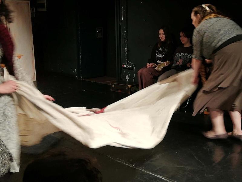 Emlékfoltozók a Csiky Gergely Állami Magyar Színházban.
