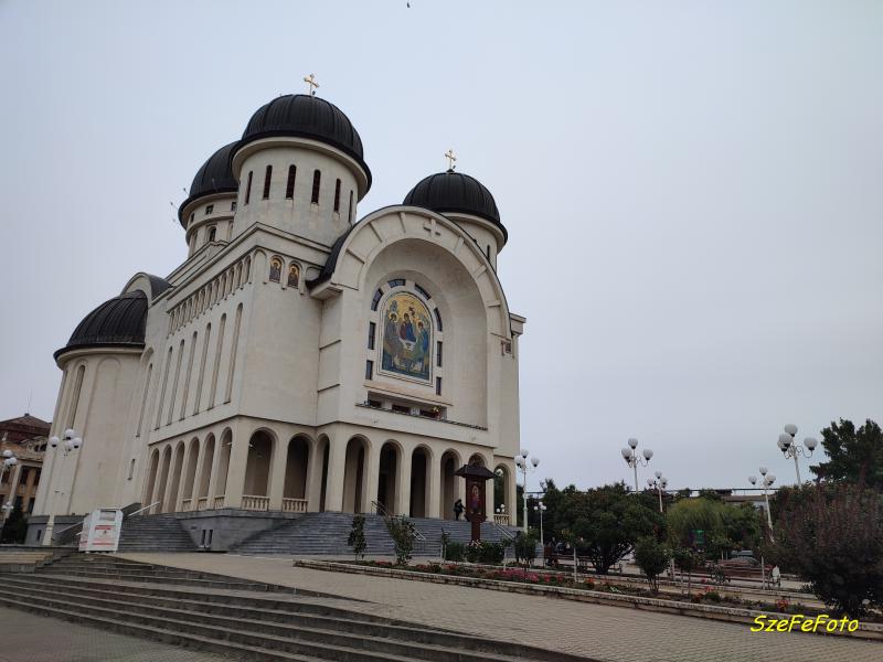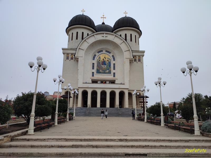 Így, ennek a sorozatnak a végén engedtessék meg egy számomra érdekes épület fölemlítése is. Az aradi Szentháromság-székesegyház egy ortodox székesegyház, az Aradi Főegyházmegye érseki székhelye. Az épületben található Aranyszájú Szent János ereklyéinek egy része is. A székesegyház festményét Cezar Constantin Cătălin Băluț festőművész készítette, és 2018 decemberében fejezték be, amikor a templom felszentelésére is sor került.