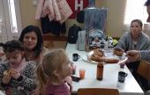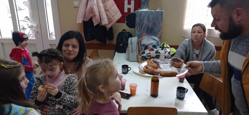 A körmenetből visszatérő vendégeket a vadászotthon termében teával, pálinkával és forralt borral kínálták. A Varrócska Nőegylet tagjai gondoskodtak róla, hogy finom fánk is kerüljön az asztalra.