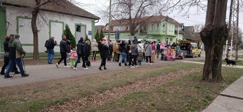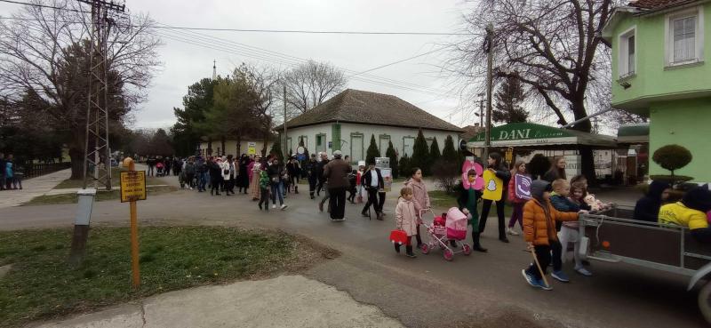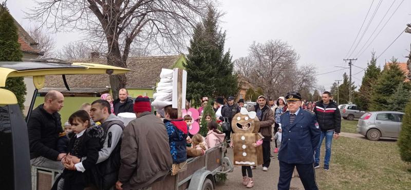 A vadászotthonban kezdődött a gyülekező, ahonnan kicsik és nagyok jelmezekbe öltözve vonultak végig a falu számos utcáján. A hagyományokhoz híven a farsangolóknak a községházán átadták jelképesen a „falu kulcsát”.
