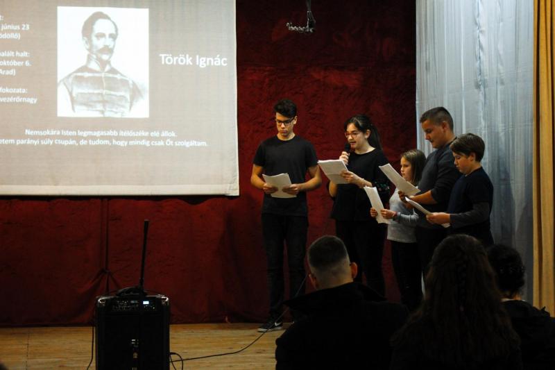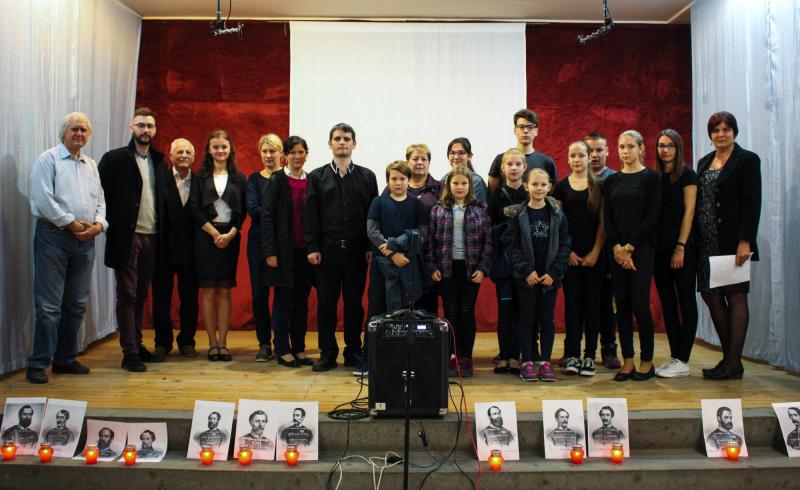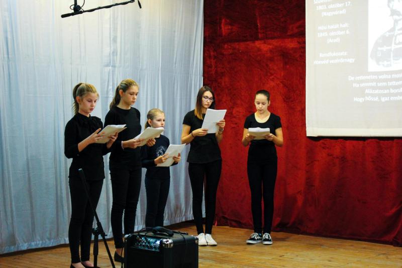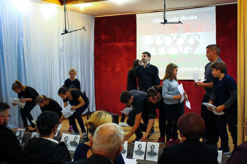 Október 4-én a tiszakálmánfalvi Petőfi Sándor Művelődési Egyesület Varázslók ifjúsági csoportja az 1848-as forradalom és szabadságharc hőseire és mártírjaira, az aradi vértanúkra emlékezett. A gyermekek, fiatalok a történelmi eseményről meséltek, az aradi tizenhárom hősies és mindannyiunk számára mindenkor példát mutató nemzeti elkötelezettségről. Az, hogy felnőtt és gyermek egy témáról beszél, énekel, hall, mind összekovácsoló és közösségformáló erővel bír, így ez alkalommal az egyesület felnőtt tagjai is aktívan bekapcsolódtak az előadásba. Milánovity Ottíilia - egyesületi elnök, Barna-Sára Bernadett, Juhász Andrea, Snejder-Sára Ildikó - szülők, Moldvay Károly, Milánovity Sándor, Pápista István szavalata és énekhangja tette rendhagyóvá a megemlékezést.