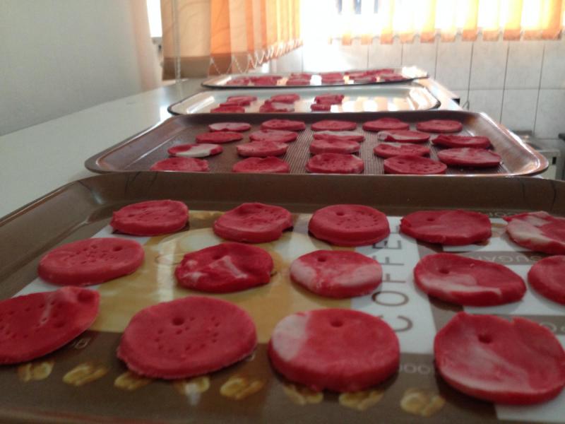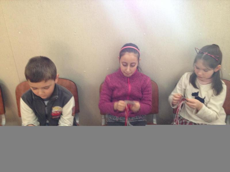 A gyerekek megismertettek a márciuskával, a tradicionális román népszokással, mely a tavasz váráshoz kötődik (lásd korábbi cikkeinket: Máricuska; Tiszán innen, Dunán túl...).. Március 1-jén a férfiak úgynevezett márciuskákat ajándékoznak a nőknek. A mára már gesztussá vált ajándékozás minket is megihletett. Sütöttünk muffint pirosat és fehéret, készítettünk karkötőt és kis díszeket. A fehér/piros színkombináció a szerencse, az öröm, a szeretet vagy a szerelem jelképei. A piros szín a tavaszt, a fehér a telet szimbolizálja. A márciuska díszeinket a gyerekek továbbfejlesztették, így március 1-jén mindegyikük saját készítésű ajándékkal lepte meg családtagjait.
