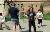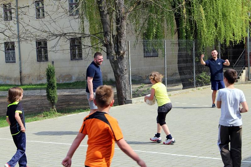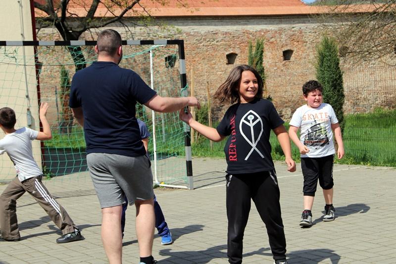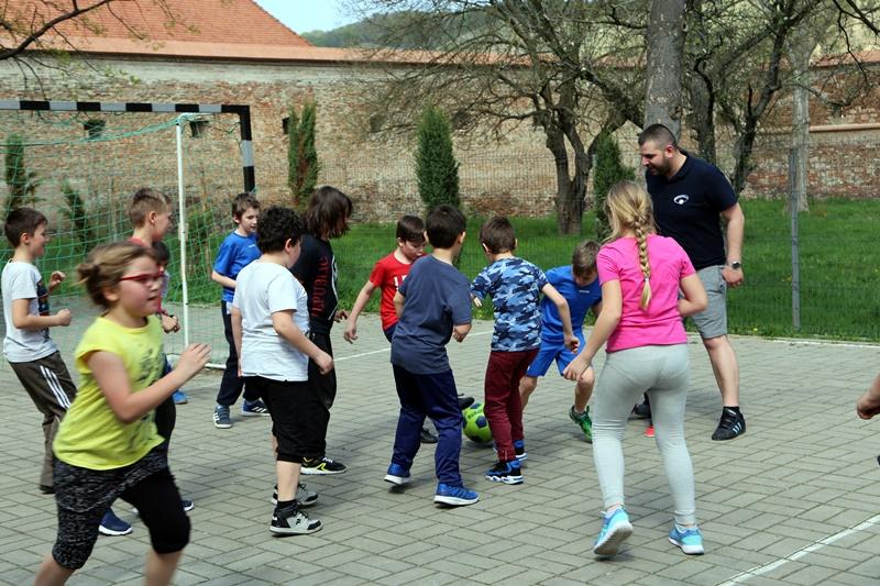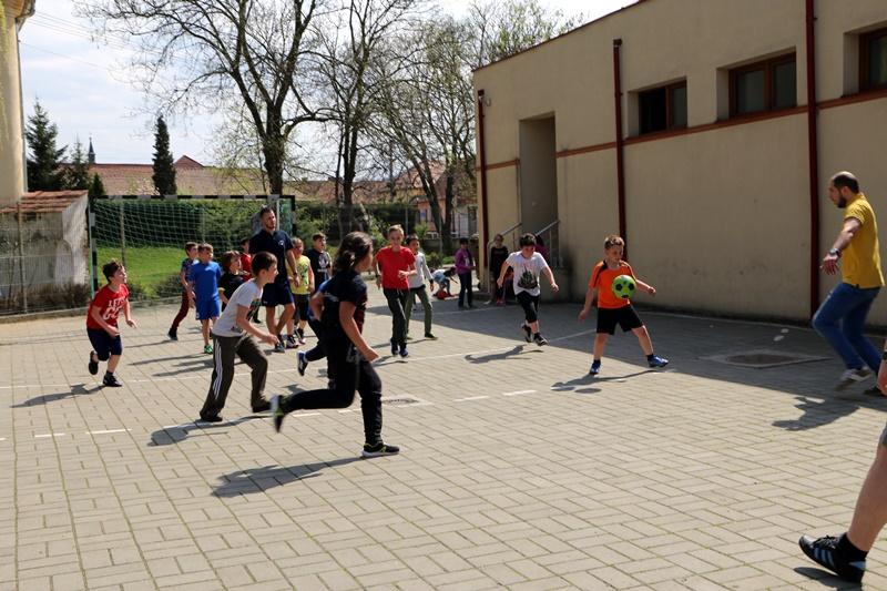 Rendhagyó focimeccsnek lehettek szemtanúi az érdeklődők pénteken délután a Báthory iskola udvarán. Ilyen hangos szurkolást is rég hallott már a környék, hiszen zengett az egész udvar a pompomlányok biztatásától. A barátságos mérkőzést a tavaszi idő is megihlette. A medgyesi délutáni iskolások újra birtokba vették a magyar iskola udvarát, a Medgyesi MADISZ nagyfiúi számára pedig, akik egykor szintén báthorysok voltak - némi nosztalgiára is alkalmat adott az esemény, hiszen a 2. és 3, illetve a 4. osztályosok két csapatban, a MADISZ fiúival kiegészülve rúgták a bőrt.