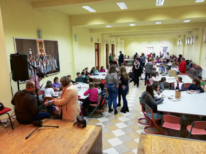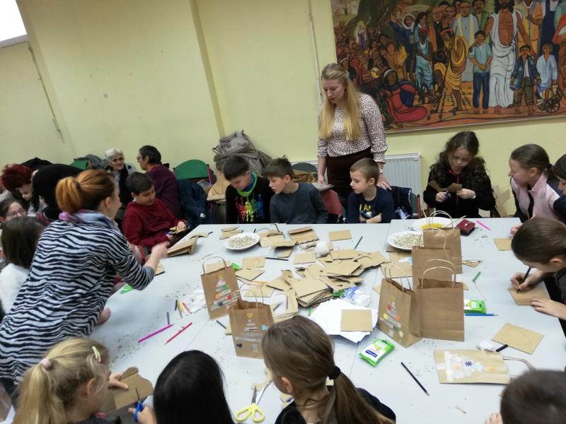 Négyfaluban már néhány éve szokássá vált, hogy a történelmi egyházak helyi magyar képviselői Karácsony előtt kézműves-foglalkozásra hívják a településen tanuló magyar kisiskolásokat. A városban működő két iskolából az előkészítősöktől a negyedikesekig érkeztek a Csángó Házba a fiatalok – mintegy 140-150 gyermek – a pedagógusaikkal.