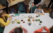 A fellépések, hangszerismertető, táncház mellett kézművesfoglalkozás is volt. Gyöngyfűzést tanulhattak az érdeklődők Göbő Jutka vezetésével.