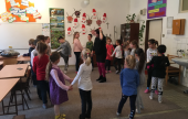 2019.01.18-án a Szepsi magyar iskolában Csallóközi gyermekjátékokkal ismerkedhettek meg a gyerekek. Nagy Éva, az iskola tanítónője, aki a néptánc szakkört szokta tartani, segítette a munkámat. Az alsó osztályos gyermekek láncjátékokkal, guggoltató játékokkal, bújó-vonuló játékokkal megismerkedtek. Ritmus fejlesztésben is volt részük. Az óra végén pedig fergetegeset játszhattak, így még jobb hangulatban távozhattak a foglalkozásról.