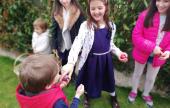 A húsvéti ünnepek alkalmából vasárnap rendhagyó “Játszóházat” tartottunk Dux László István nagykövet és felesége szervezésében. A Teleház foglalkozásait rendszeresen látogató gyerekek megismerkedtek az ünnepi szokásokkal, az elrejtett húsvéti tojások megkeresésével és a locsolkodás hagyományával. Amíg a gyermekek a kertben gyűjtögették a tojásokat, a szülők megismerték és jó étvággyal fogyasztották a húsvéti ünnep elengedhetetlen ételeit: a húsvéti sonkát főtt tojással és tormával, a fonott kalácsot. A Teleház legapróbbjai nagyon élvezték a locsolkodást. A legszebb versekért a lányok bőségesen megjutalmazták a “locsoló legényeket”.