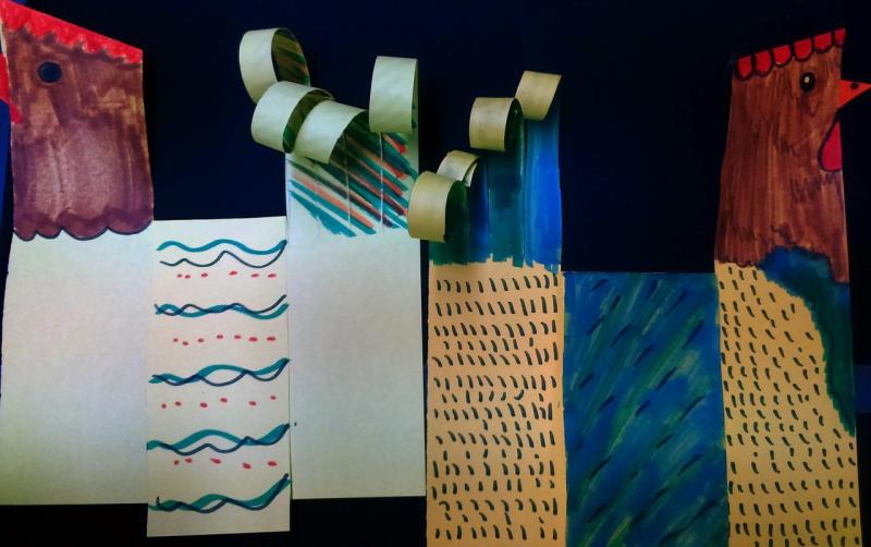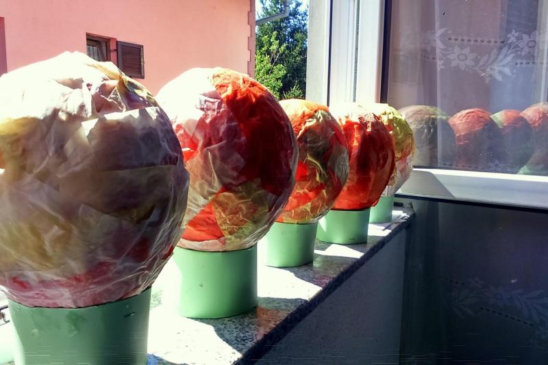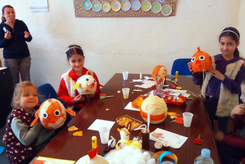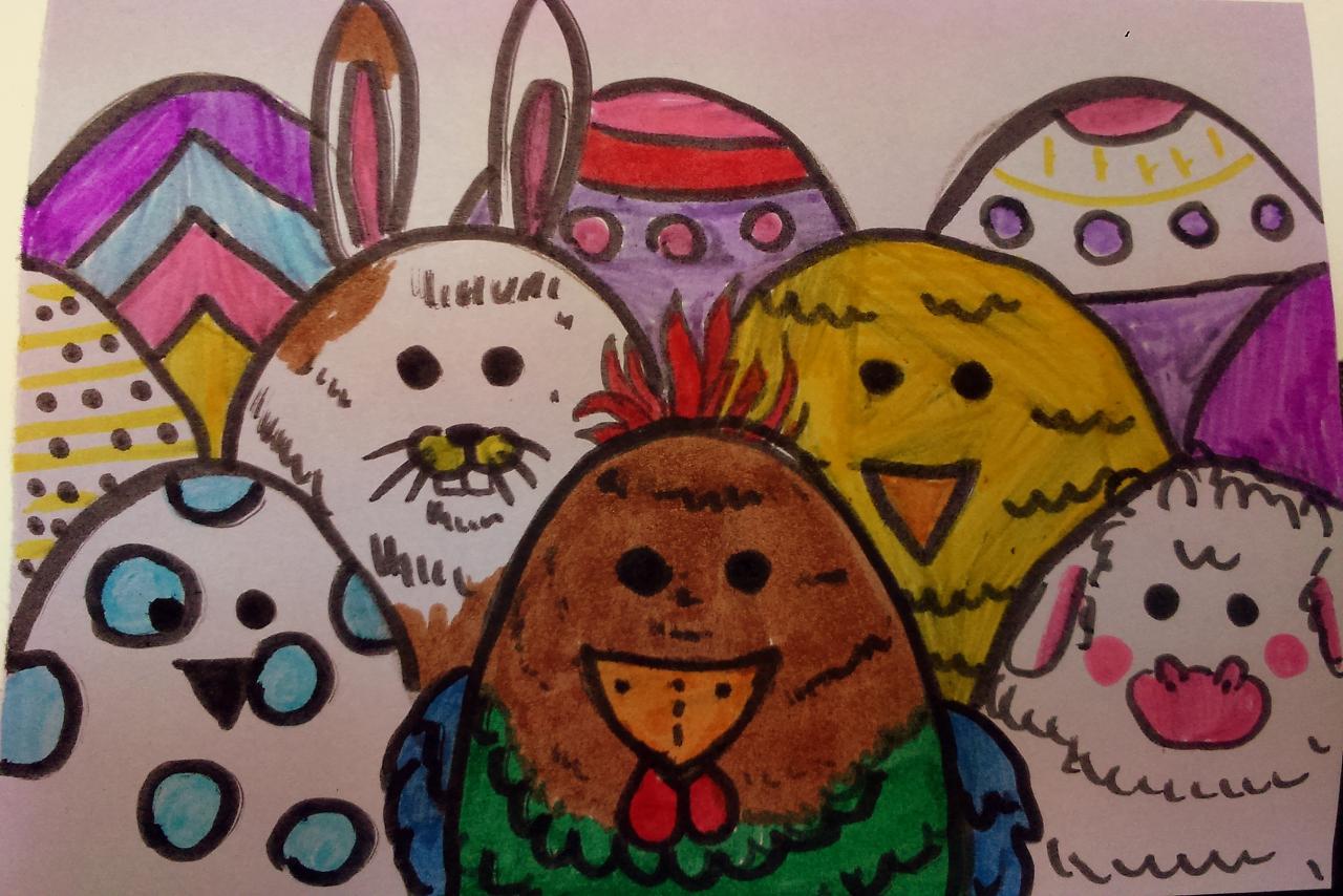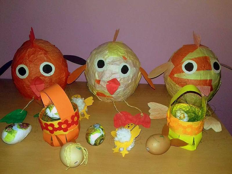 Papírból hajtogatható és színezhető nyulakkal, csibékkel, majd képeslapok készítésével foglalkoztunk. Lufi alapú papírmaséból tyúkot kreáltunk. Majd pompom technikát alapul véve nyuszit, csibéket, bárányokat alkottunk. Kórógyon emellett megismerkedtünk a dekupázs ragasztóval és a szalvétatechnikával, így gyönyörű tojásokat készíthettünk a falu lakóinak ajándékba. A gyerekek emellett kis kosárkákat is összeállíthattak a saját tojásaiknak. Vukováron a hatalmas papírmasé tyúkok, és a pompom állatkák mellett papírguriga alapú nyulakat is festettünk, ragasztottunk.