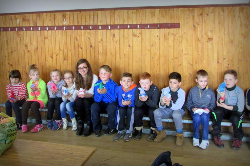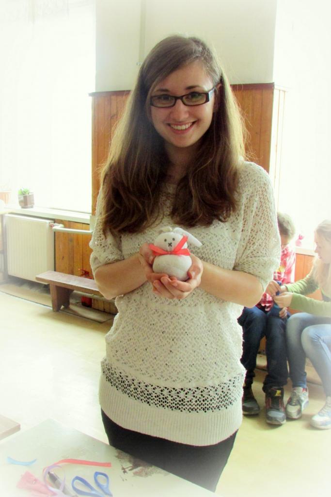 2016. március 24-én, csütörtökön a Bolyai János Középiskola alsós kisdiákjainak szerveztem húsvéti kézműves foglalkozást. Miután a kisfiúk elmondták locsolóverseiket, kezdődhetett a kora délután interaktív része. A gyerekek előzetes feladata volt, hogy hozzanak otthonról egy már nem használt zoknit, melyből nagyon könnyen nyuszit varázsolunk. A zoknikat megtöltöttük rizzsel, majd a tetejét cérnával, a nyakát pedig szalaggal kötöttük meg. Ollóval csinos füleket formáztunk, végül filccel rajzoltunk rá arcot. Nagyon vidám délutánt töltöttünk együtt és a gyerekek is örömmel vitték haza immár új funkciót betöltő zoknijukat.