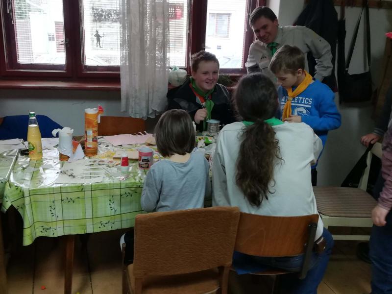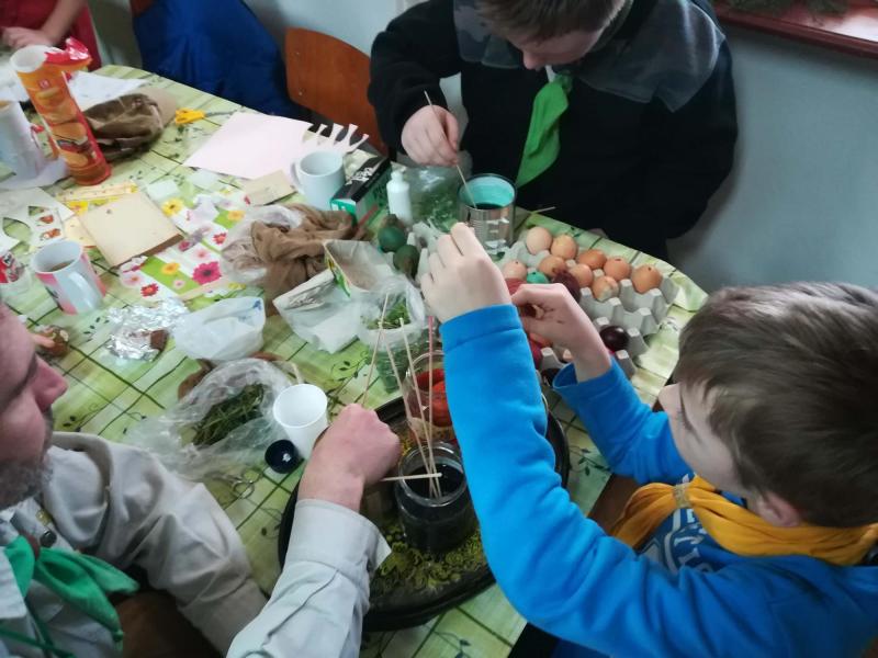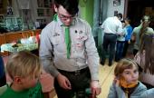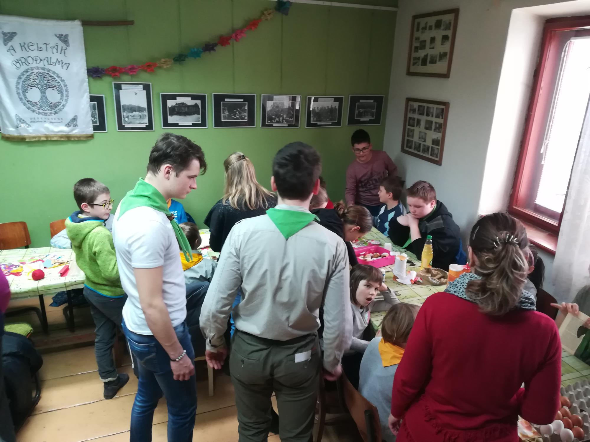 A vasárnap nem csupán a tavaszi időszámítást hozta magával a rimaszombati cserkészek számára. A korai ébresztőt követően a délutánt együtt töltöttük a Cserkészotthonban, ahol szép számmal gyűltünk össze, cserkészek, szülők és leendő cserkészek, hogy felelevenítsük a húsvéti népszokásokat, s közösen készüljünk a húsvéti ünnepekre. Az egybegyűltek köszöntését követően, felhangzott a Cserkészinduló, majd Csúsz Balázs kötötte le a gyermekek figyelmét érdekes játékokkal, míg a kertben Pataky Andrással elrejtettük a tojásokat. A feladat egyszerű volt: a fiatalok három csoportba rendeződtek élükön egy-egy csapatkapitánnyal, az a csapat lett az első, amelyik a leghamarabb gyűjtötte össze az elrejtett tojásokat. A tojások mindegyike a húsvéthoz kapcsolódó népszokásokat rejtette, melyeket csapaton belül beszéltek meg a résztvevők, majd egy játékos vetélkedőn vethették össze tudásukat a gyerekek. A vetélkedőt izgalmas kincsvadászat követte, rejtelmes talányokon keresztül juthattak el a csapatok e megérdemelt kincsükhöz. A játékokat követően a Cserkészotthon melegében töltöttük a délután többi részét, ki-ki a számára legkedvesebb kézműves foglalkozással kerülhetett közelebb a húsvéthoz, a húsvéti hagyományokhoz.