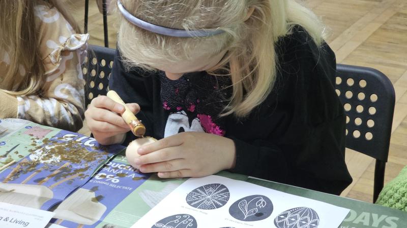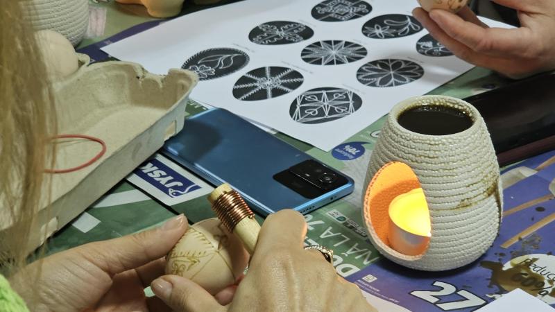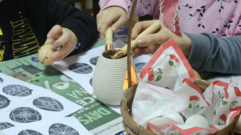 A programot a Bíborka Egyesület szervezte, a foglalkozást az egyesület képviseletében Kovács Erika vezette. Fiatal és idősebb asszonyok, gyerekek és anyukák együtt díszíthették a kifújt vagy főtt tojásaikat főként Székelyföldi, Kalotaszegi és Mezőségi minták alapján, méhviasszal, írókával, kárminvörös festékkel.