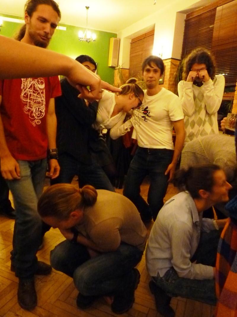 A felkészülés számomra egyszerre volt nehéz és könnyű. Nehéz, mert rövid idő alatt egy nagy létszámú ismeretlen csoportnak kell jót produkálni. Könnyű, mert tudtam, hogy olyanok jönnek majd, akik szeretnek játszani. De a játék szintjétől többet szerettem volna elérni: olyan szituációkat teremteni, amelyekben együtt kell dolgozni, helyzeteket megoldani, a másikat segíteni. Viszont nagyon vigyáztam arra, hogy ne billenjen át komoly feldolgozást igénylő helyzetekbe, hisz mégiscsak egy játékestről beszélünk.