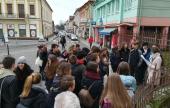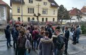 A Rimaszombatba érkező Kecskeméti Református Gimnázium diákjaival március idusán jártuk be a város nevezetességeit. Ugyan az idő nem kedvezett a szabadtéri sétának, mégis lelkes fiatalokkal indultunk el a Tompa Mihály Református Gimnázium elől, hogy a vendégségbe érkezett diákok megismerkedhessenek a valaha itt élt és alkotott nagy elődökkel, az épületekkel, s pár anekdotával, melyek Petőfi Sándorhoz kapcsolódnak, s ki e jeles napon személyével előtérbe került a városi séta alkalmával is.