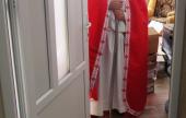 A piros puttonyos Mikulást, a Szent Család Karitász munkatársai szállították és segítették munkájában, vagyis a hatalmas ajándékokkal teli zsákot cipelték utána, mert olyan jók voltak a gyerekek, hogy idén két ajándékot is kaptak.