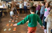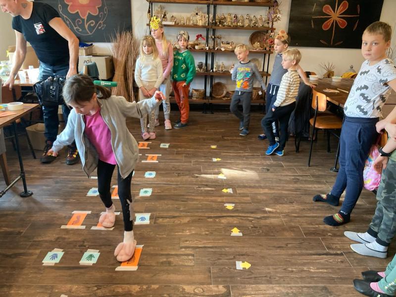 A bemelegítést különféle mozgásos feladatokkal és játékokkal végeztük, majd, amíg az ügyességi pálya elkészült, az asztaloknál kis csoportokban próbára tettük a gyerekek ügyességét – tüdejük erejét és szem-kéz koordinációjukat is. Ezután az elkészült ügyességi pályán versenyezhettek a kis sportolók, végül pedig egy vidám „medvevadászattal” zártuk a foglalkozást.