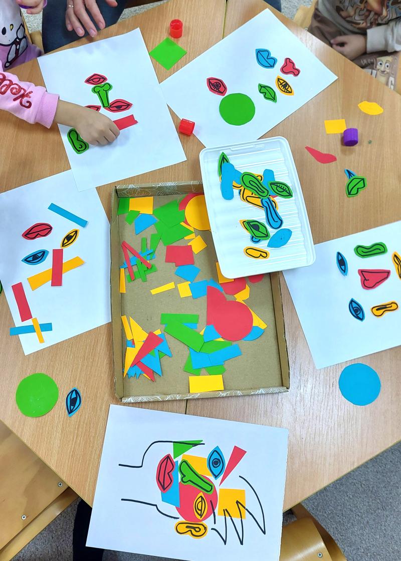 Ösztöndíjasként az óvodásokkal kézműves foglalkozásokat végzek. Minden héten az óvónő kijelöli a témát, én pedig ahhoz igazodó kreatív feladatokat válogatok össze. Igyekszem minőséges kézműves programokkal készülni, a szakmámból kifolyólag nagy hangsúlyt fektetek arra, hogy a kézügyesség mellett, a gyerekek vizualitását és esztétikai érzékét is fejlesszem. Az én személyes kedvenc témám az volt, amikor a színekről és formákról tanultunk. Különféle színű és alakra vágott papírokat vittem, melyekre testrészeket rajzoltam, és a gyerekeknek kubista jellegű portrékat kellett összeállítani. Nagyon izgalmas végeredmények születtek, érdekes volt megfigyelni, hogyan jelent meg a gyerekek különböző látásmódja az elkészült munkákon.