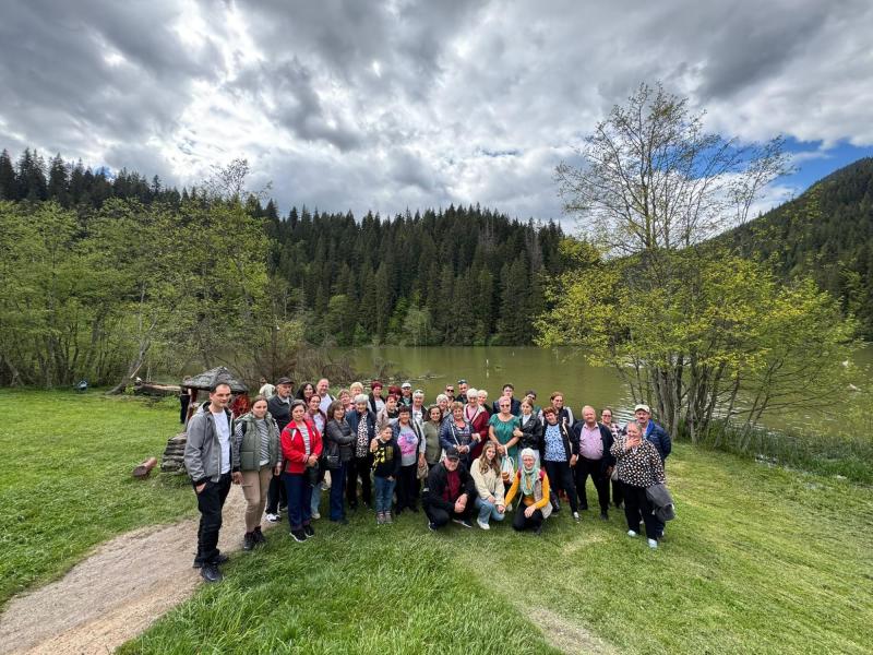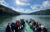 A szorosból kiérve a Békási-víztározó felé vettük az irányt, ahol a kirándulásunk szerves részeként közösen hajóra szálltunk, majd egy mintegy félórás hajókirándulás során gyönyörködhettünk a hatalmas tó kékjében, az esős napok után megérkezett, melengető napsütésben, és a tavat minden irányból körülölelő, a vízfelszínről is visszatükröződő, sűrű erdőkkel borított hegyek látványában. A tó békéje és a zöldellő hegyek látványa szép levezetése volt a nap élményeinek.