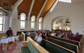 Következő állomásunk Gyergyószentmiklós volt. Itt elsőként a helyi református templomot látogattuk meg, ahol a gyülekezet lelkipásztora fogadott bennünket, majd mesélt nekünk a templom történetéről, a gyergyói református gyülekezet életéről, végül egy zsoltár közös eléneklésével búcsúztunk.