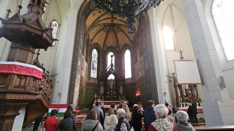 Első megállónk Ditró volt, ahol megcsodálhattuk a helyi római katolikus templomot, melynek mérete, gazdagsága és elhelyezkedése arról tanúskodik, milyen erős gyökerei vannak Székelyföldön a római katolikus közösségnek. Székelyföld egyik legnagyobb temploma ez, két hatalmas tornyával és lenyűgöző belső terével, ami a kisebb református gyülekezet tagjainak szemével igazán lenyűgözőnek hatott.