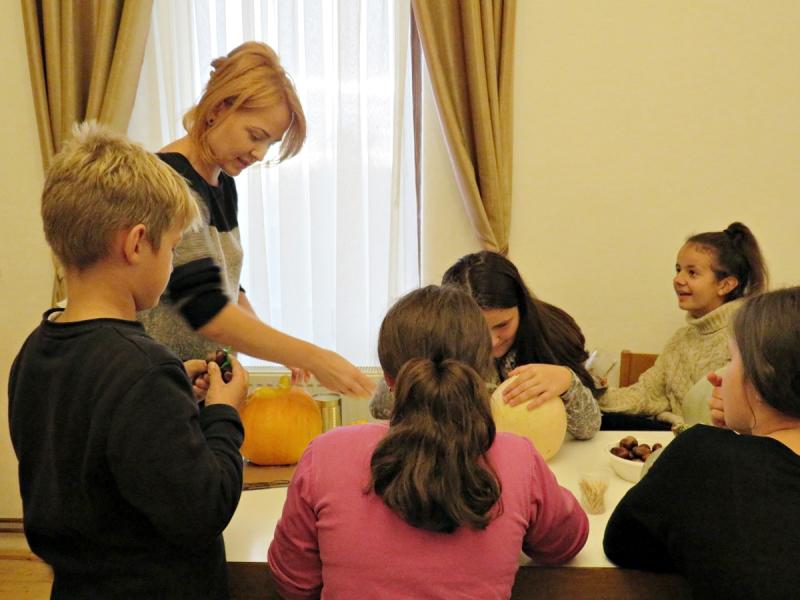 Boldogan fogadva a természet őszi kincseit 2016 októberében Gáspár Ildikó tanárnő vezetése alatt a délutáni magyar iskola tanulóival egy teljes délutánt kézügyességünk és határtalan kreativitásunk kibontakoztatásának szenteltünk. Fő alapanyagaink gesztenyék és tökök voltak, melyek kiegészültek gallyakkal, őszi levelekkel, virágokkal és egyéb apró elemekkel. Az itt született meseszép alkotások magukért beszélnek.