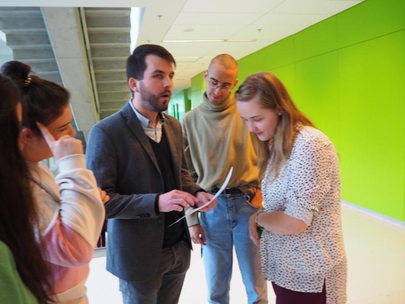 Az Egyetemen a történeti sétán túl, a diákok érdeklődés szerint közös magyar és irodalom óra részesei lehettek. A programot egész napos vetélkedő színesítette, mely alkalommal a szak tanárai, doktoranduszai kvíz mesterek bőrébe bújtak. Az Egyetem termei egy- egy vetélkedő állomást valósítottak meg, a tavalyi tanév sikerei alapján hasonlóan, az évfolyamok és érkező országok szerint, vegyes összetételű csapatok egy- egy a magyar nyelvvel kapcsolatos "világba" csöppentek. A diákok egy- egy kihívással, nyelvtörőkkel, hangutánzó szavakkal, történelemmel, rovásírással, nyelvtani, nyelvhelyességi és rokon értelmű szavakat kereső feladatokkal kerültek szembe pl.: "A szavak világában" címmel. A nyelvi játékban tizenkettő 4- 5 fős csapat vetélkedett. A játék vége rendkívül szoros eredményekkel zárult. A "Nem,nem,soha" csapat szerezte a legtöbb pontot és végül a könyvjutalmat.