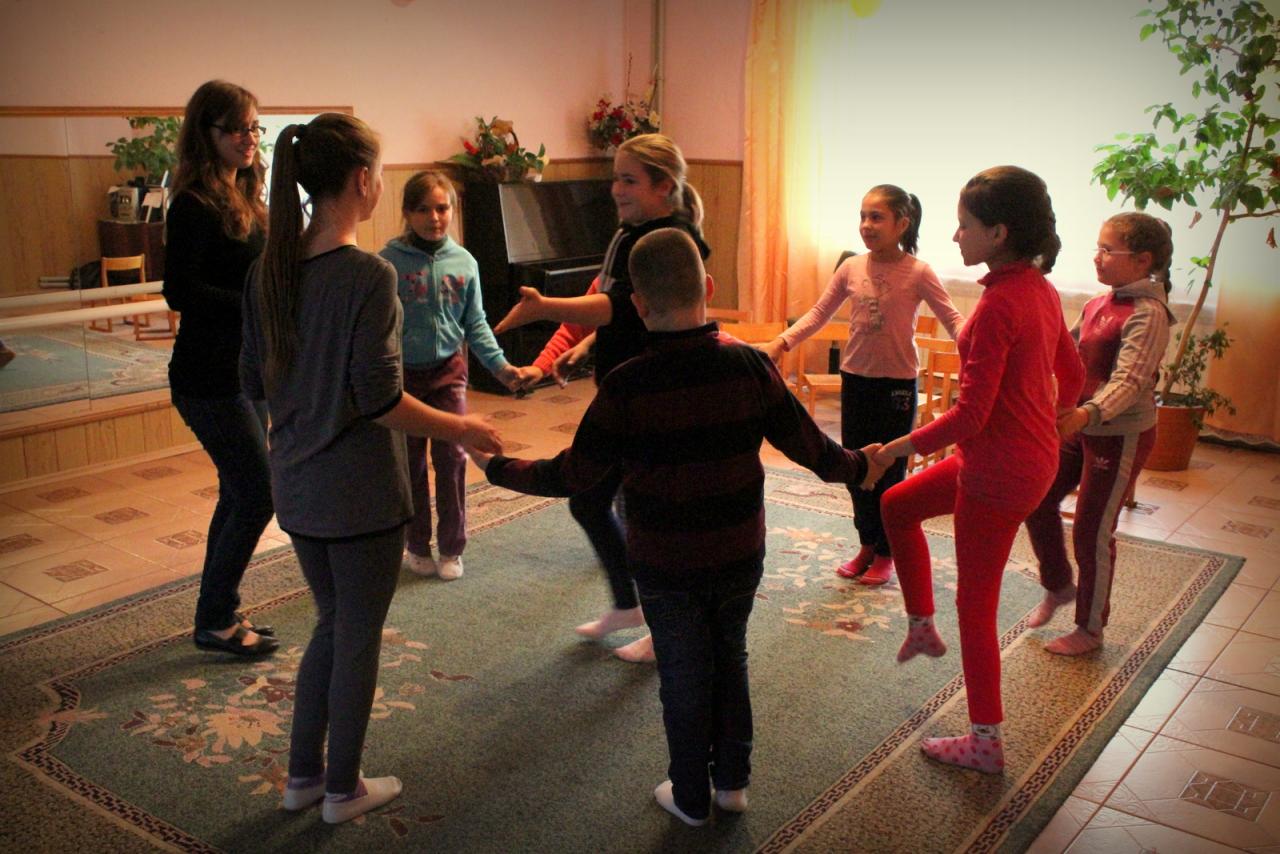 Kárpátalján, a bustyaházi magyar óvoda épületében a vasárnapi iskolás gyerekek október óta járhatnak néptánccal, illetve népi játékokkal, népdalok tanulásával egybekötött foglalkozásokra. A résztvevők közül szinte senki nem beszél magyarul, de ez nem akadályoz bennünket abban, hogy jól érezzük magunkat; a 45 perces foglalkozások mindig változatosan és tartalmasan telnek. Bár a gyerekekkel való kommunikáció a nyelvi akadályok miatt még mindig nem zökkenőmentes, úgy érzem, az elmúlt egy hónap alatt sokat fejlődtek beszédértésben, sőt egyre gyakrabban hallom őket magyarul beszélni. A gyerekeket a napokban kezdem el felkészíteni a karácsonyi műsorra.
