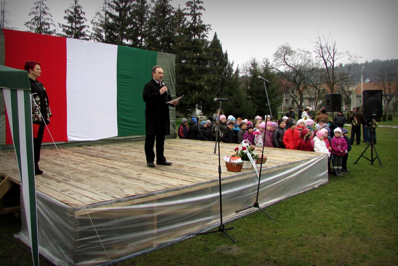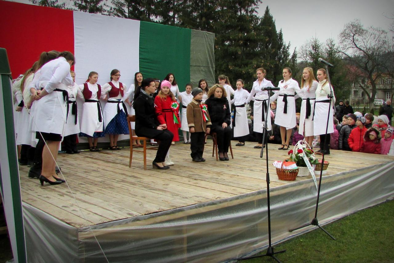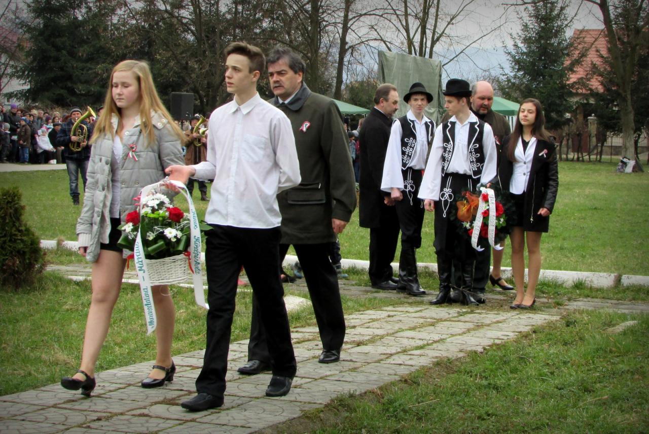 1848. március 15. hatalmas pillanat volt, a nemzet nagy pillanata. Minden szív egyszerre dobbant, minden lélek egybefonódott egy csodálatos másodpercre. A több évszázadnyi elnyomás után a nemzet megtalálta önmagát. Méltóképpen ünnepeltük Aknaszlatinán nemzetünk nagy eseményét, a magyar forradalom és szabadságharcot. A műsor délután két órakor kezdődött a Szent István templom kertjében. Beszédet mondott Kocserha János alpolgármester úr, valamint Szedlák Gyula, a KMKSZ helyi alapszervezetének elnöke is. Ezt követően a Szent Anna óvoda növendékei léptek fel, majd egy nagyon színvonalas előadást láthattak a helyiek a Bolyai János Középiskola pedagógusaitól, jelenlegi és volt diákjaitól egyaránt. A nagyjából 20 perces műsorban néptáncoltunk, énekeltünk, verset, színdarabot mondtunk, s az Örökségünk dal is felcsendült, mely azóta a legötletesebb videó címet is elnyerte. A megemlékezést koszorúzással zártuk, a menetet pedig az aknaszlatinai fúvószenekar kísérte muzsikájával.
