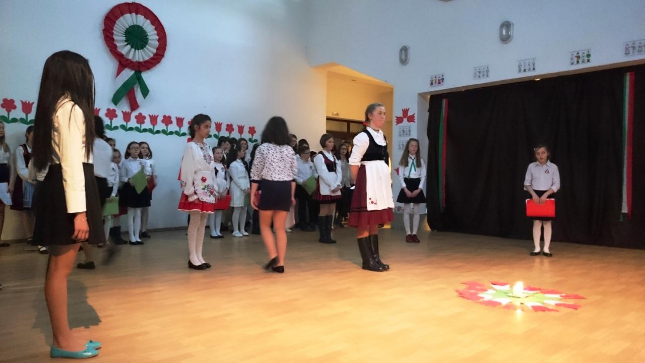 Az ünnepség délután 16 órától folytatódott a vajdahunyadi református templomnál, ahol a Téglás Gábor iskola kisdiákjai Dulinszky Izabella tanárnő vezetésével ünnepi előadást mutattak be. A diákok forradalmi verseket szavaltak, majd katonadalokat énekeltek, méltóképpen megemlékezvén a 1848-as forradalom és szabadságharc hőseiről. Ezt követően került sor az ünnepi beszédekre, majd megkoszorúzták a Petőfi Sándor – egyetlen Hunyad megyei – szobrát.