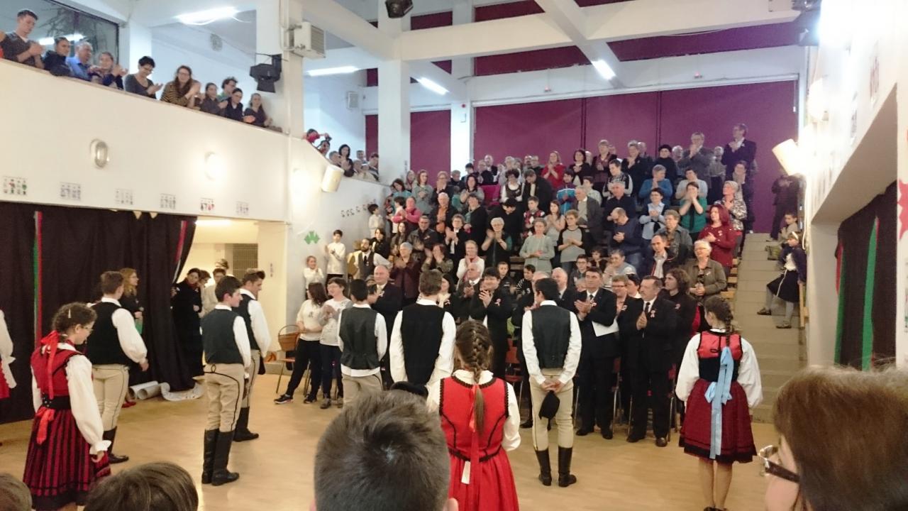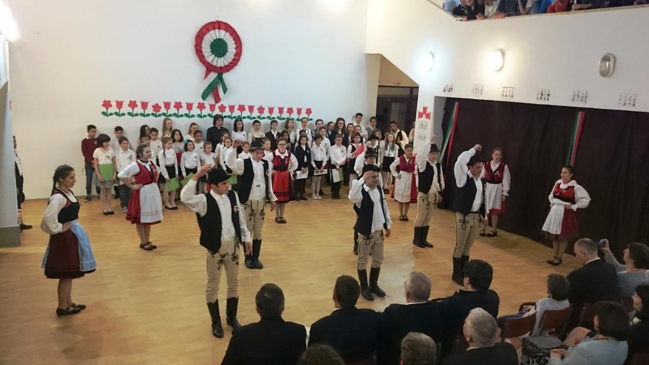 Déván 18 órától folytatódott tovább az ünnepség, amikor is a Téglás Gábor Elméleti Líceum aulájában a diákok egy csodálatos előadást mutattak be. Az “Adományozás a Kossuth-bankó elkészítésére” című ünnepi műsort Kun-Gazda Kinga, Mészáros Enikő, Lengyel Izabella tanárnők állították össze, amelyben a gyerekek énekeltek, szavaltak és táncoltak. Az előadás során fellépett a Szent Ferenc alapítvány Margaréta tánccsoportja. Tompos Krisztina – Petőfi Sándor program ösztöndíjasa – vezetésével toborzó, illetve szatmári táncokat mutattak be, valamint az iskola énekkara a Dalos pacsirták emelték az ünnepély hangulatát. Az egy órás előadást követően a jelenlévők vastapssal köszönték meg a nem mindennapi előadást, majd közösen énekelték el a Himnuszt, ezzel megkoronázva a Nemzeti Ünnepünket.