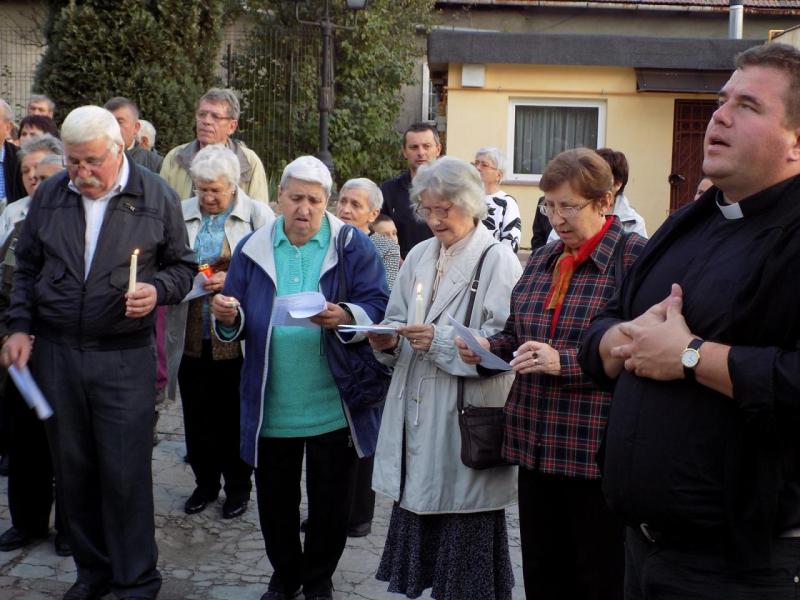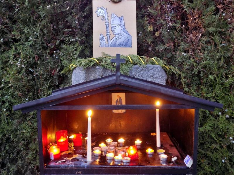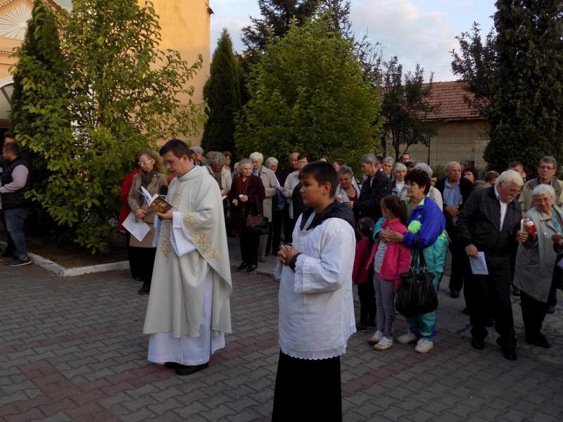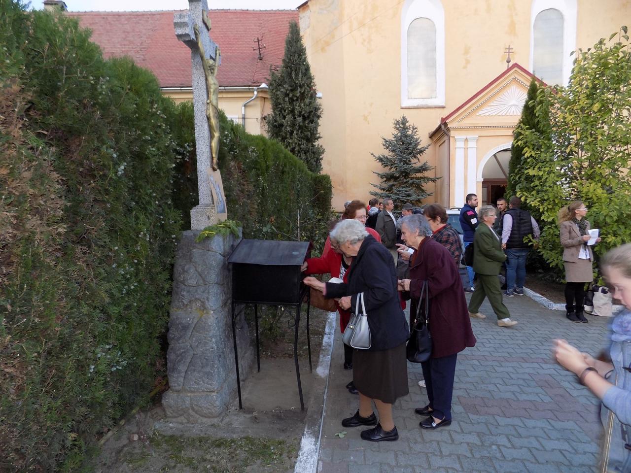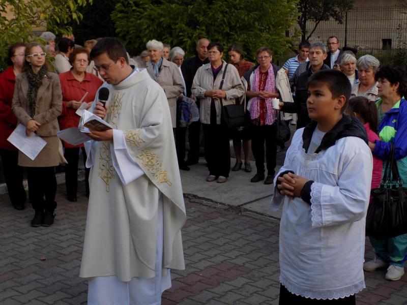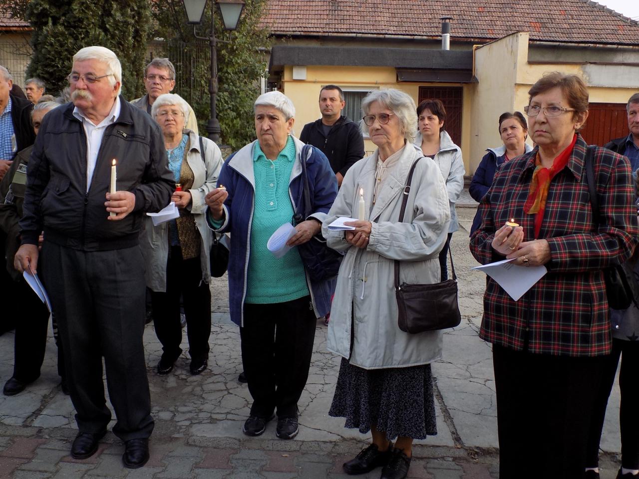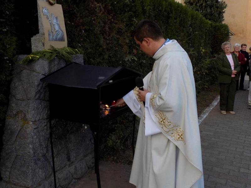 A szentmise végén a templom előtti téren gyertyákat gyújtottak Áron püspökre emlékezve.