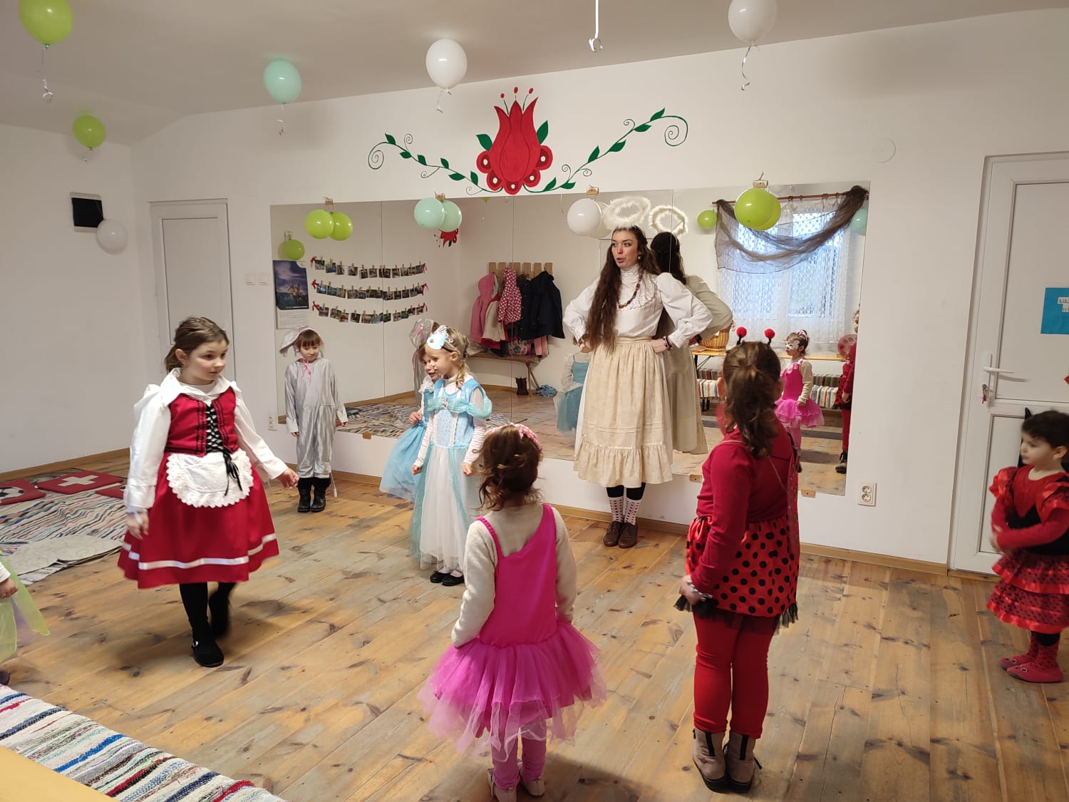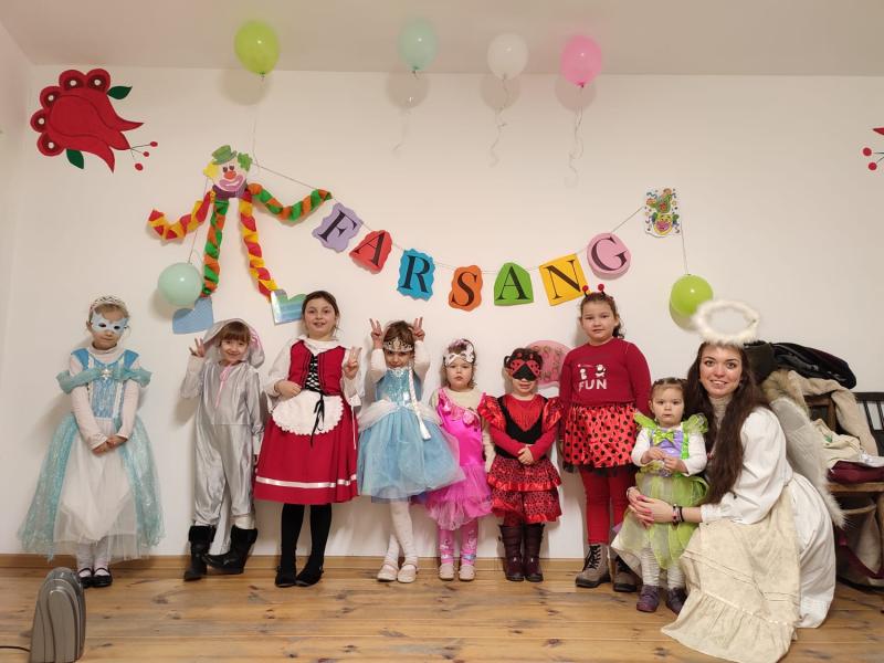 A farsangi időszak Csernakeresztúron sem telt mulatság nélkül. A Csernakeresztúri Hagyományőrző Egyesület Aprócska csoportjában farsangi maszkabált szerveztünk. A terem ünnepi díszbe bújt, és az anyukák nagy odaadással készítettek farsangi fánkot az eseményre. A legapróbb táncosok jelmezbe bújtak, bemutatkoztak, volt akinek a jelmezéhez vers, vagy dal is kapcsolódott. Farsangi álarcokat készítettünk, mondókákat, dalokat tanultunk a farsanghoz illően, ezen kívül népi játékokat játszottunk, táncoltunk. Pihenésként fánkkal és almalével relaxálódtunk, amit hangos kacagás és jókedv fűszerezett.