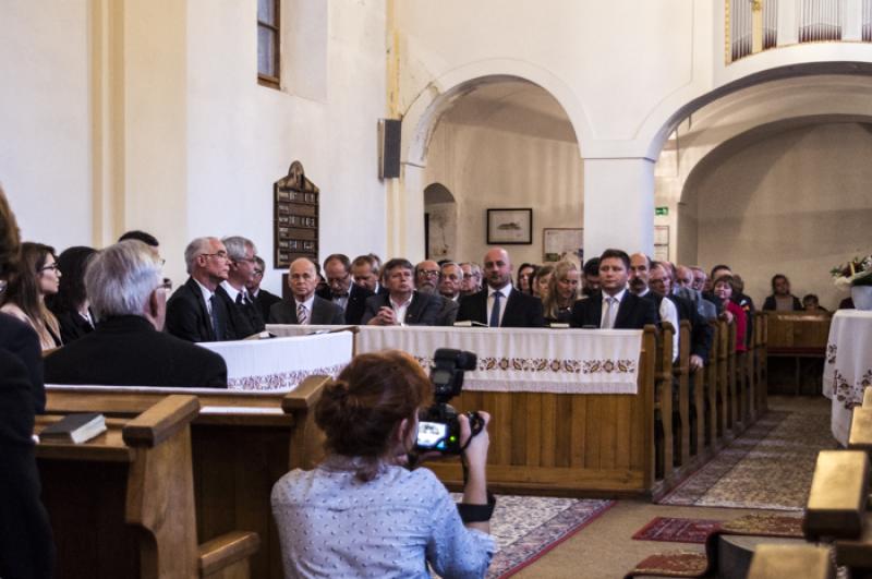 A délután háromkor kezdődő ünnepi istentiszteleten a prédikációt Fazekas László, a Szlovákiai Református Keresztyén Egyház püspöke tartotta. Köszöntő beszédet mondott többek között Balog Zoltán, az emberi erőforrások minisztere, Géresi Róbert püspökhelyettes, és Kiss Miklós, a Fiatal Reformátusok Szövetségének elnöke. Az új Magyar Református Központ átadása mellett a Fiatal Reformátusok Szövetségének 25 éves fennállását is ma ünnepelte azt egyházközösség.