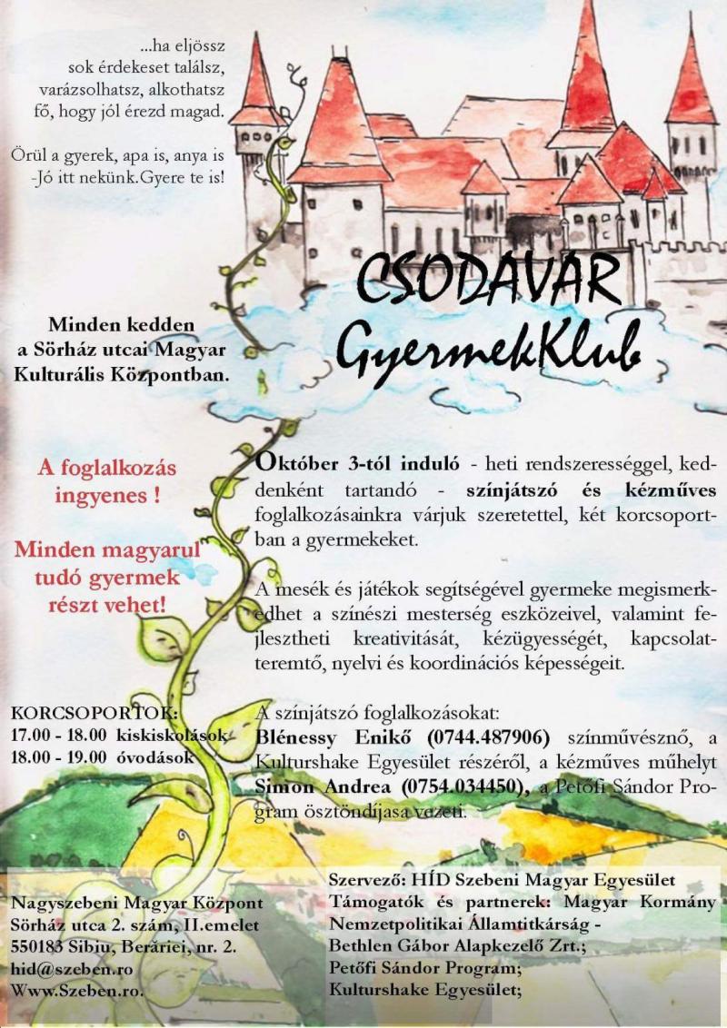 Színjátszó és kézműves foglalkozások Nagyszebenben 2017. október 3-tól heti rendszerességgel tartunk színjátszó és kézműves foglalkozásokat Nagyszebenben, magyarul beszélő gyermekek számára. kézműves foglalkozás gyerek szabadidő