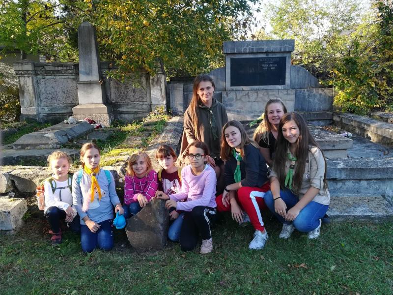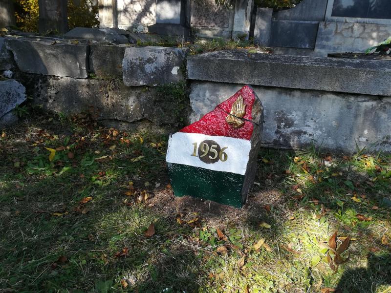 Az idei megemlékezés az 1956-os forradalom- és szabadságharc hősei előtt, már október 23-a előtt egy héttel kezdetét vette. A Mókus őrs és a Vad Liliomok őrs közösen keresték fel a temetőben a Megemlékezés kövét. A rendkívüli őrsi foglalkozás keretében saját magukat is kipróbálhatták, mint emlékkőújítók. Az előzőlegesen megtisztított kőre jelképesen festették fel az évszámot “1956”. Ezt követően felidéztük az 1956-os eseményekkel kapcsolatos történéseket, melyeket az előző esztendőkben tanítottam nekik, majd bővítettem tudásukat. A hét további részében Boholy László cserkésztestvéremmel a kő egészét megújítottuk, így készülve a jövő heti megemlékezésre, mint meglepetés a magyar közösség számára, s mint tiszteletadás a nemzet hősei előtt.