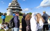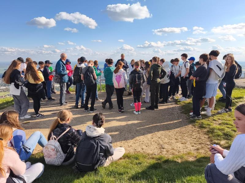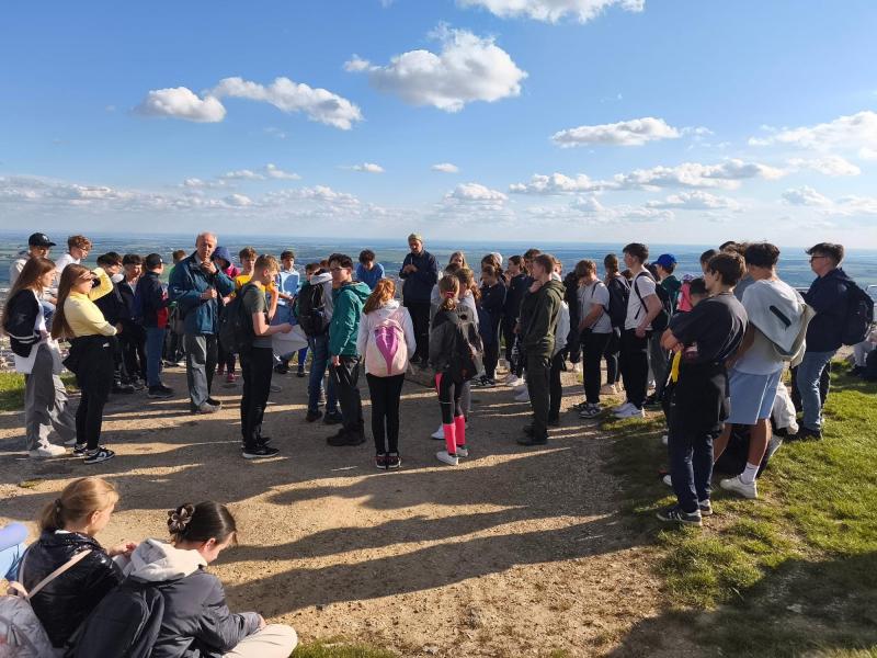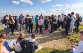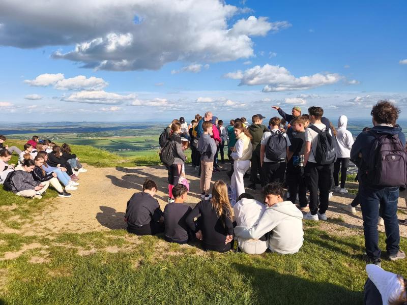 A májusi látogatás alkalmával két busszal érkezett a közel száz fős csoport. A tanárok és a diákok részére a több napos felvidéki kirándulás egyik részprogramjaként vezetett emléktúrát szerveztünk a nyitrai Zobor hegyre, ahol a magyar történelem kiemelkedő emlékeit ismerhette meg a csoport. A Zobor hegy Nyitra felőli magaslatán áll az Ezredévi emlékmű, melynek 1921-es felrobbantásának szomorú emlékeként ma már csak a torzóját láthatjuk. Ez az emlékmű a zoboralji magyarság egyik szimbóluma. Az emlékhelyhez kötődő történelmi események részleteit Csámpai László történész előadásában ismerhették meg a tanulók a hegytetőn. Ez a hely a maga természeti szépségeivel és döbbenetes panorámájával valóban olyan, mintha mesélnének a kövek.