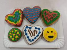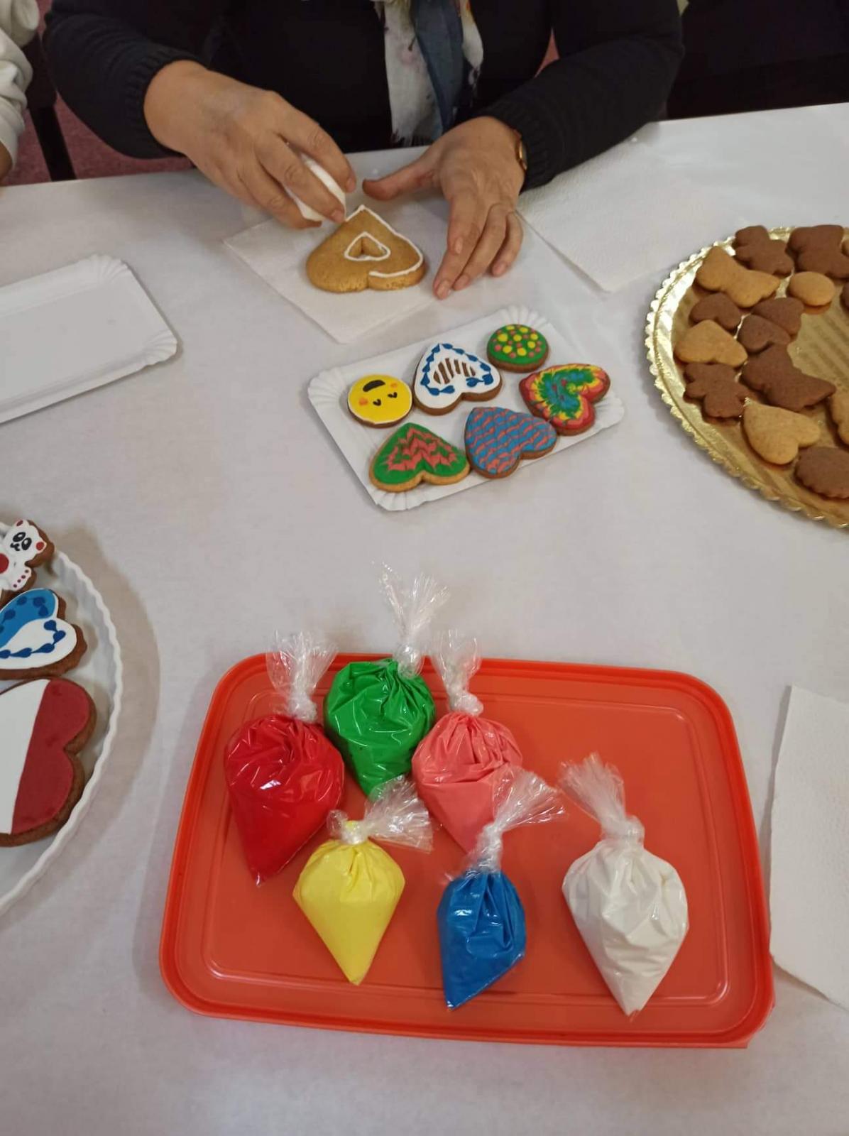 A „Kisebbségek terme” tele volt vidámsággal ez alkalommal. Rengeteg féle méretű és formájú előkészített sütemény csak arra várt, hogy kreatív festést kapjanak. A Szent Valentinra való emlékezést a szív alakú kalácsok segítették.