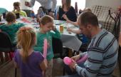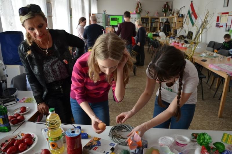 Az ostravai magyarok idei új rendezvénysorozatának, a gyerekprogramoknak második alkalmához értünk március 24-én, a húsvétváró napon. A szervezők, vagyis a Fiatal Magyarok Klubja és a CSMMSZ Helyi Egyesülete ismét gazdag programmal várta a magyar származású gyerekeket. Kis elméleti bevezetővel – a húsvéti ünnepkör ismeretetésével, a régi és újabb hagyományokról szóló előadással készült a Petőfi ösztöndíjas, majd az elméletet átvittük a gyakorlatba: a játékok közül elsőként csokitojáskeresés következett. A kézműves foglalkozást az Olomoucból érkező Nagy Sándor és felesége, Jitka vezette. Jitka több tojásdíszítési technikát is mesterszinten művel, nekünk a tojásdrótozást és a faggyúval való díszítést mutatta meg. Emellett persze az egyszerűbb módszereket is használhattuk, a locsolóknak szánt tojásainkat cicomázandó. Kipróbálhattuk még a zsírkrétás vasalótechnikát és a húsvéti koszorúk készítését is. Nagy Sándor az inkább szláv nyelvterületen ismert korbácsfonást tanította, mellyel a hagyomány szerint aztán jó egészségesre paskolják a lányokat húsvéthétfőn.