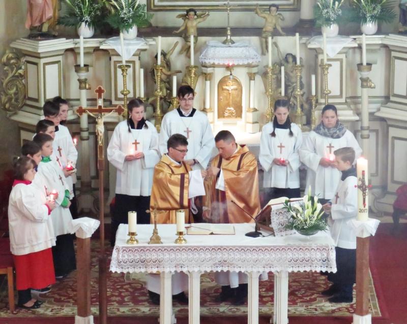 A 2017-es év olyan nagyheti élményekkel gazdagított, amilyenekben eddigi életem során még nem volt részem. Ez mentorom, Józsa Nándor Lóránd és Kuglis Gábor Levente atya mellett elsősorban az Orosz Zoltán által vezetett "Báthory István” Római Katolikus Kórusnak köszönhető, mely nagyobb egyházi ünnepek előtt újra és újra összeáll a Római Katolikus Plébánián. 2017 márciusában én is csatlakozhattam ehhez a kiváló énekes társasághoz. Ettől kezdve heti rendszerességgel próbáltunk, és szívvel lélekkel készültünk Virágvasárnap, Nagycsütörtök, Nagypéntek, Nagyszombat, Feltámadás, illetve Húsvét vasárnap miséinek énekes szolgálatára. Munkánknak meglett a gyümölcse, kórusunk igazán méltó módon színesítette az egyházi év egyik legjelentősebb ünnepkörét, mely által mindannyian részesülhettünk a megváltás örömteli kegyelmében.