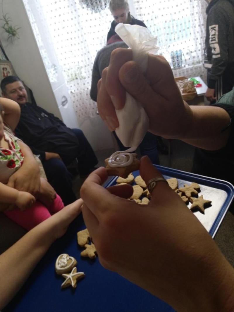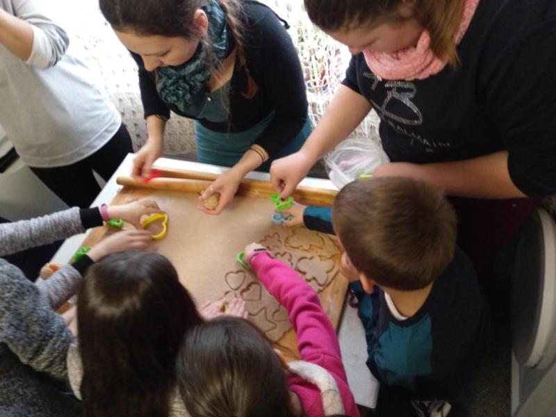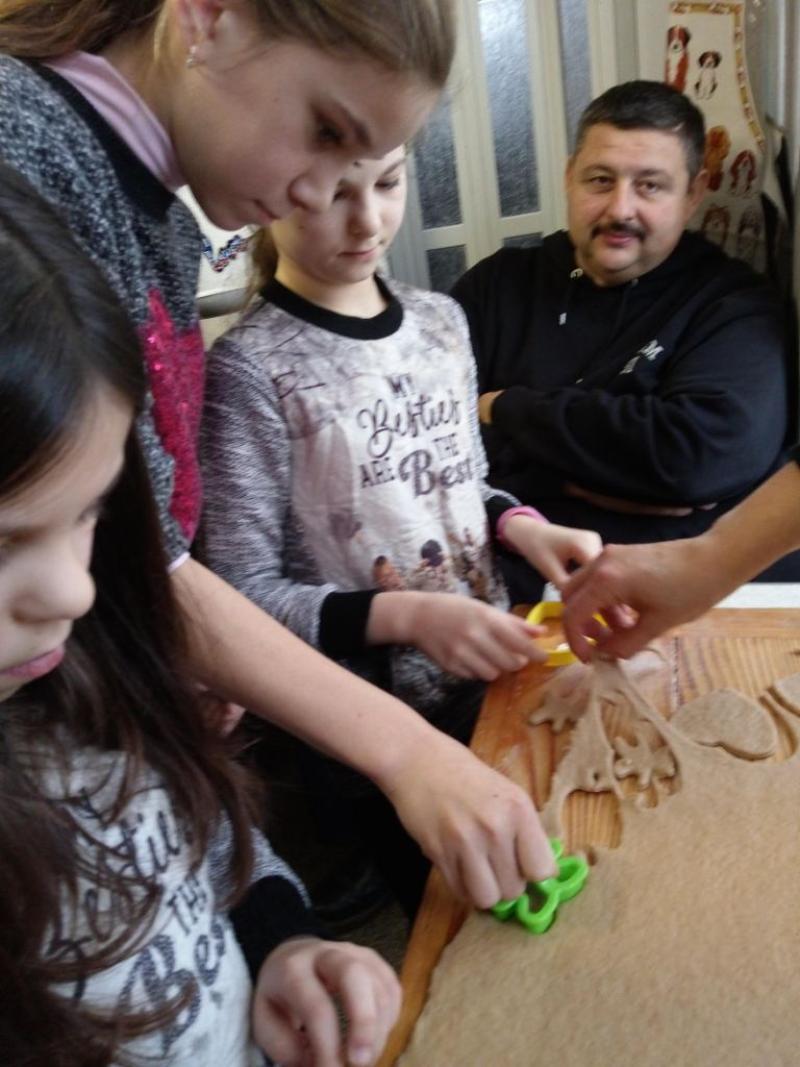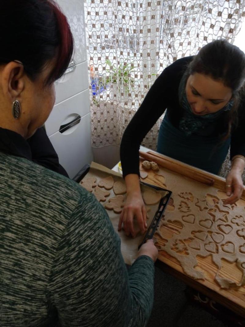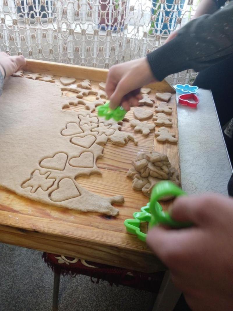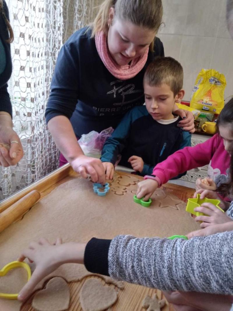 Advent harmadik vasárnapján, közkívánatra 5 kiló lisztből készítettünk mézeskalácsot az aknaszlatinai Szent Család karitászházban. Kicsik és nagyok sürögtek forogtak a konyhában. Volt, akit az édesanyja kísért el a sütögetésre, de kedvet kapott és maradt segíteni.