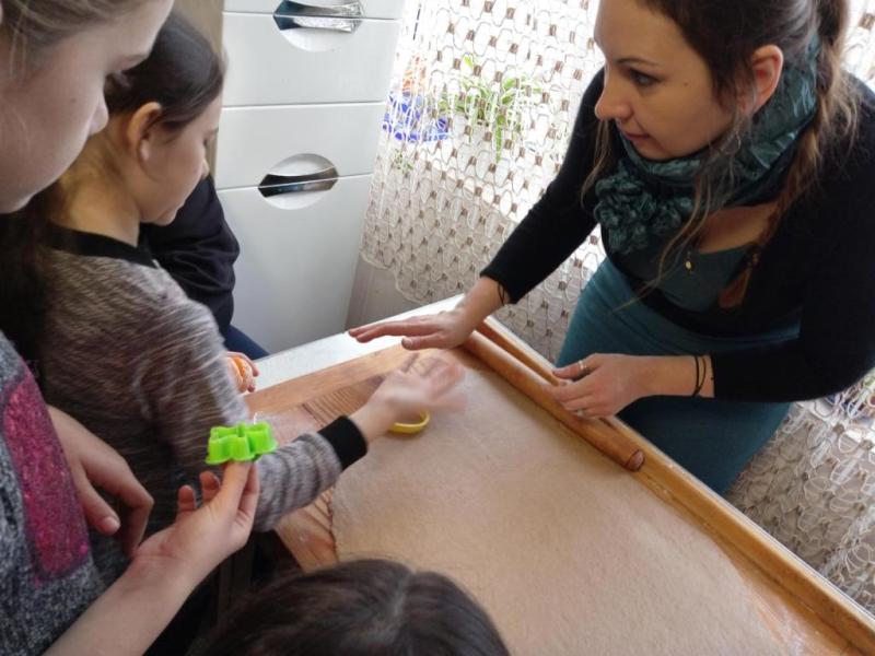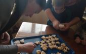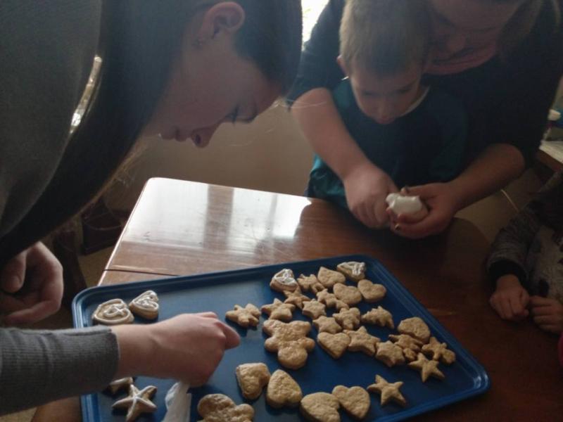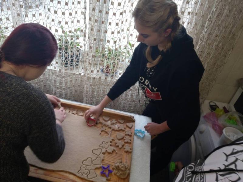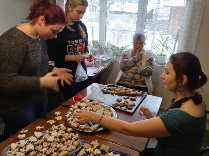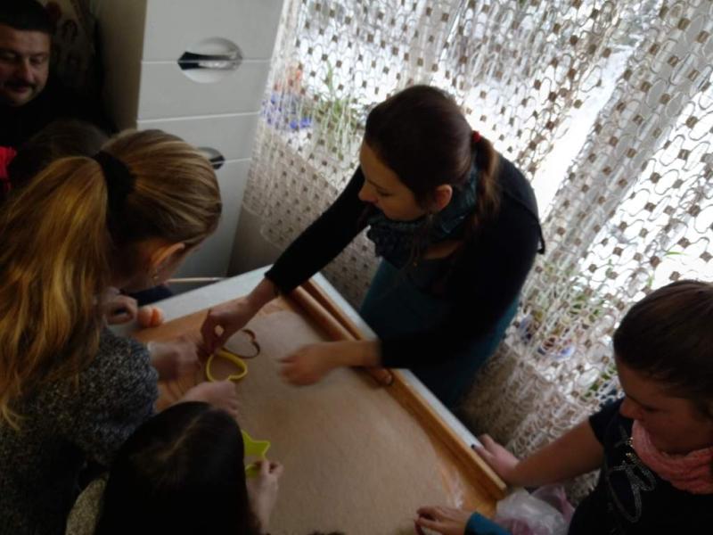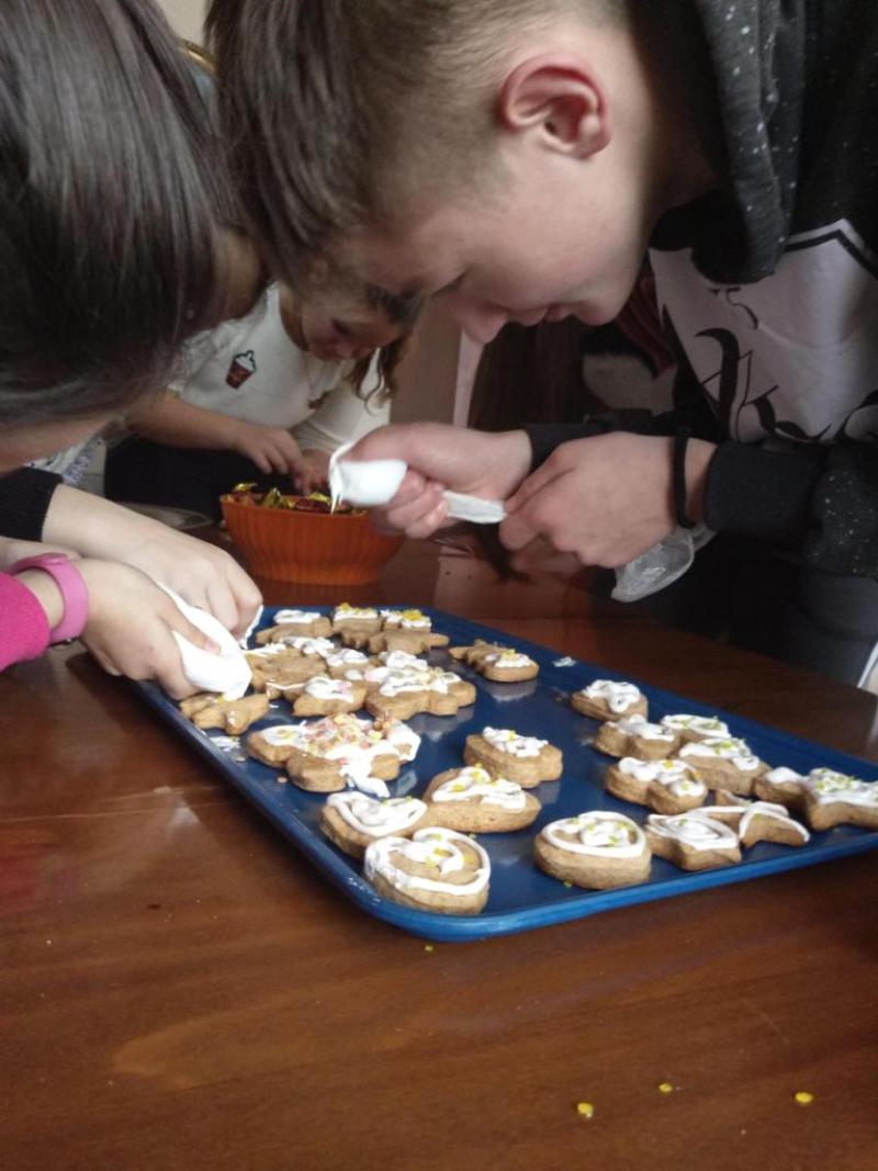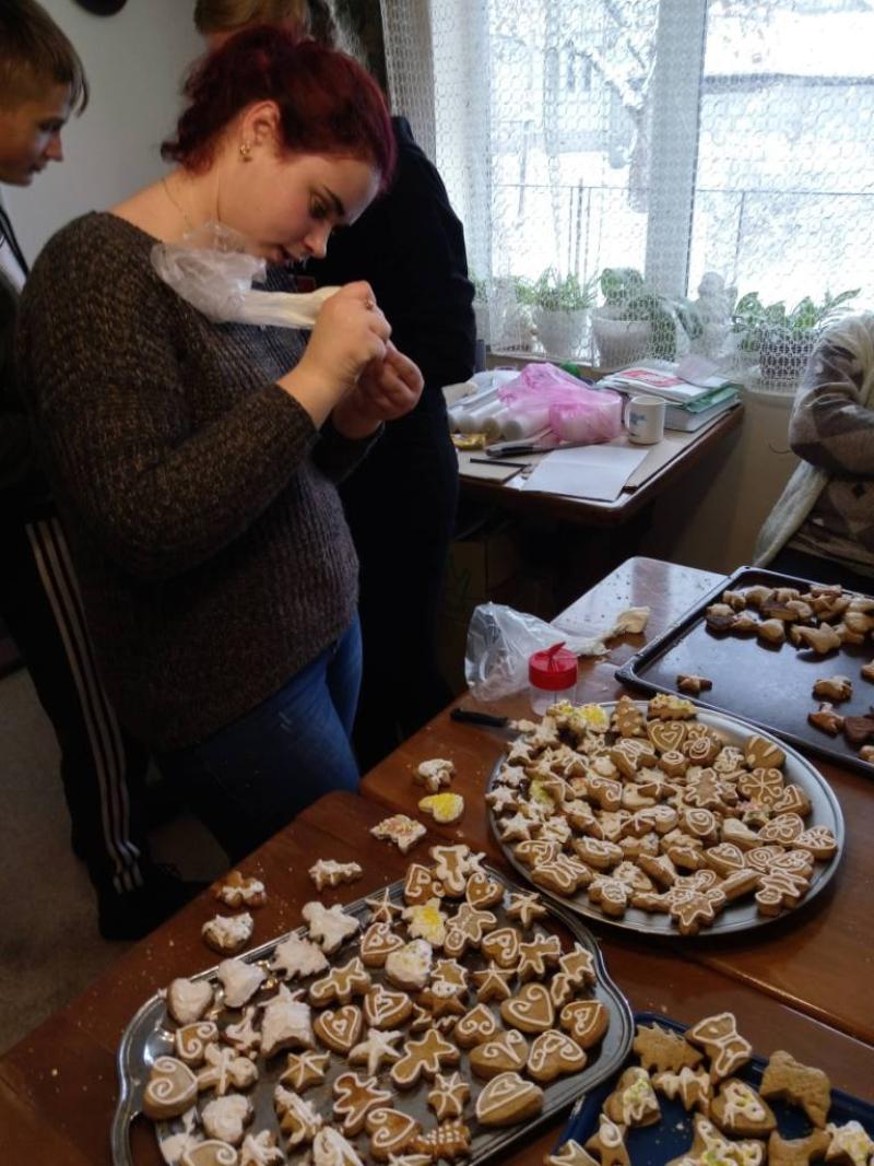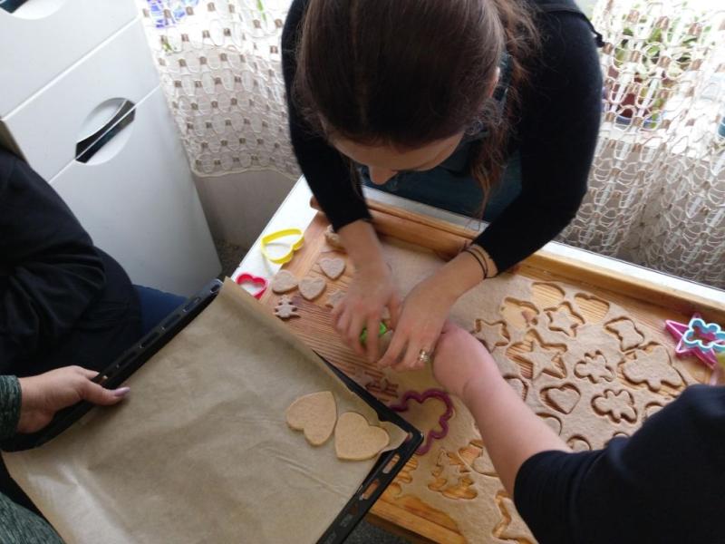 Advent harmadik vasárnapján, közkívánatra 5 kiló lisztből készítettünk mézeskalácsot az aknaszlatinai Szent Család karitászházban. Kicsik és nagyok sürögtek forogtak a konyhában. Volt, akit az édesanyja kísért el a sütögetésre, de kedvet kapott és maradt segíteni.
