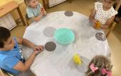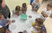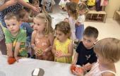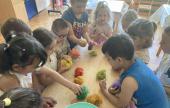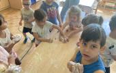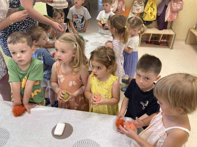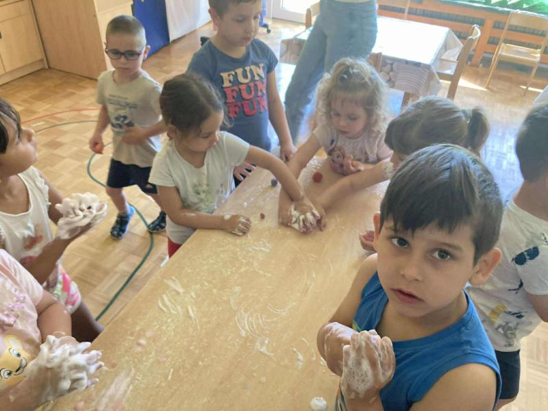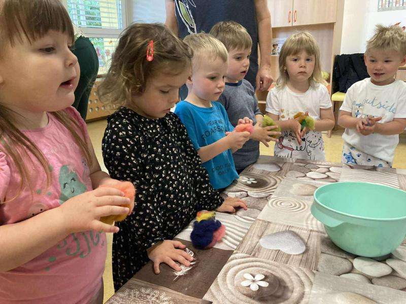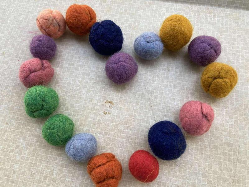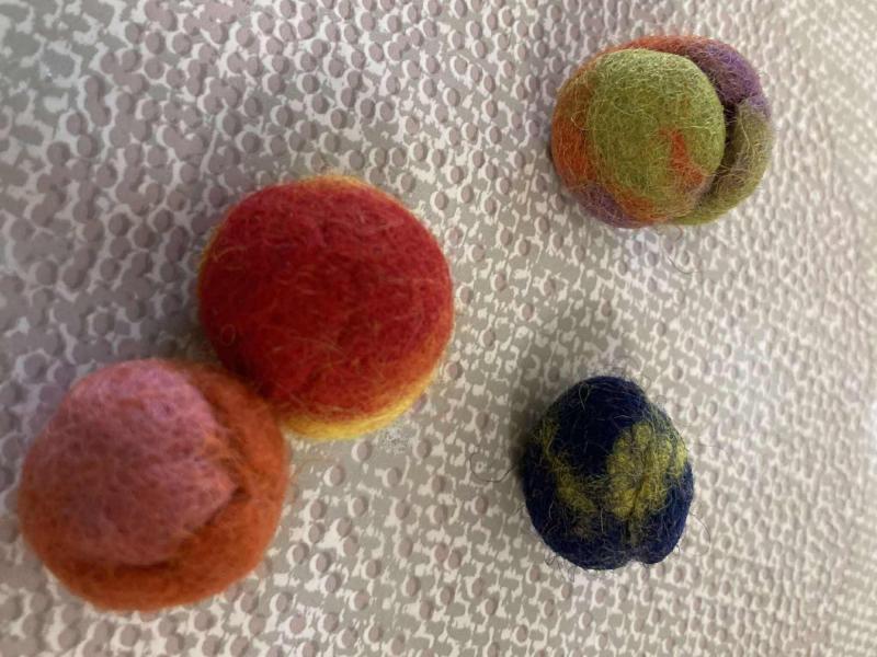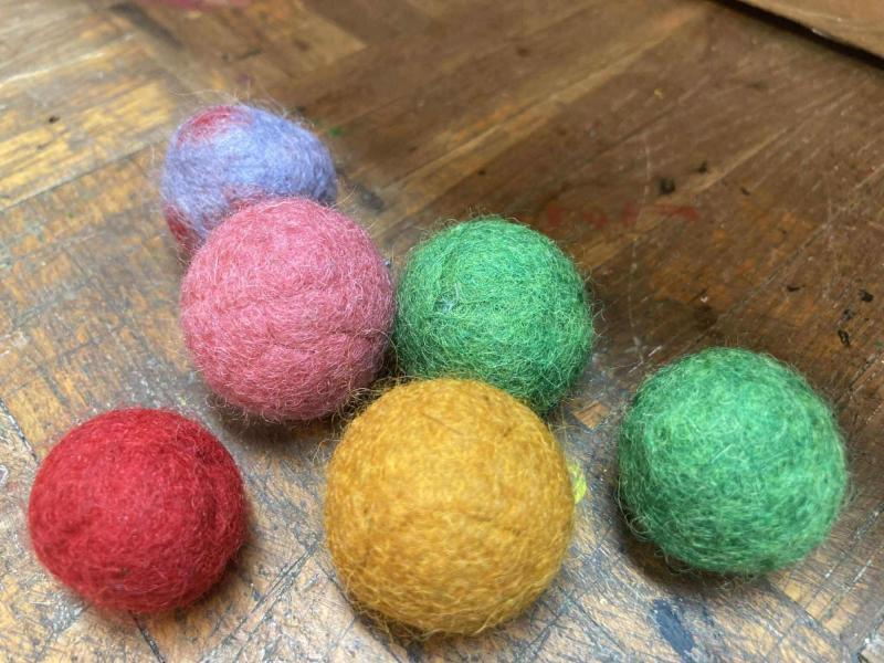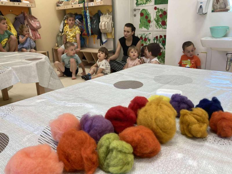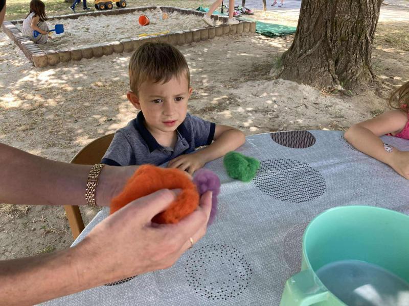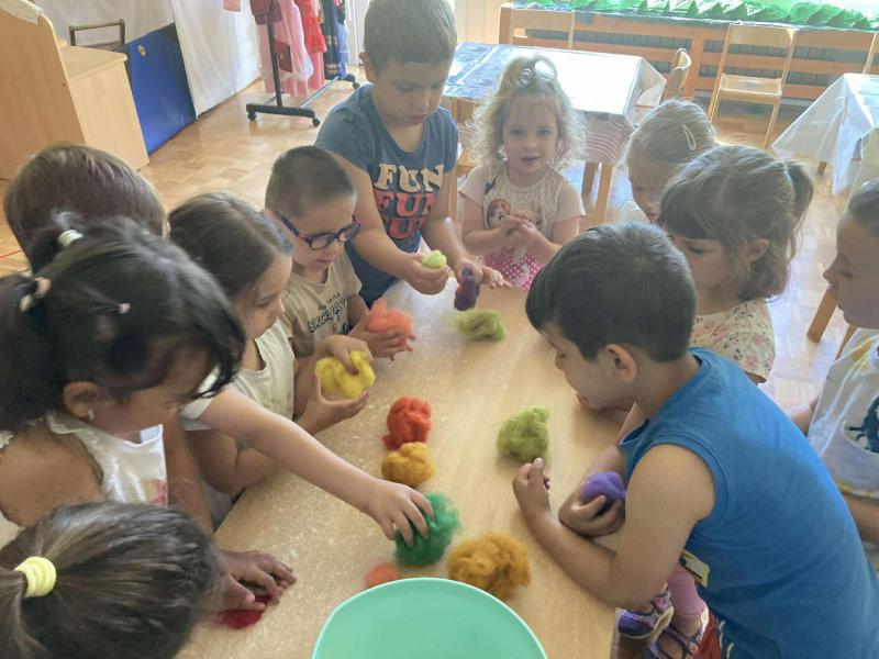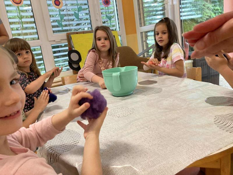 Nagyon élvezték az anyag puhaságát, majd a tapintásának változását is, miközben dolgoztak a gyapjúval. A dörzsölés, gombolyítás, vizezés és szappanozás hatására, valamint a kitartásuknak köszönhetően meg csodás kis labdák, apró játékok születtek, melyeket örömmel és egyben büszkén vittek magukkal.