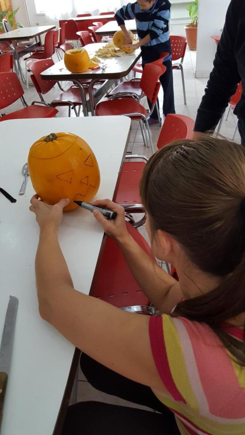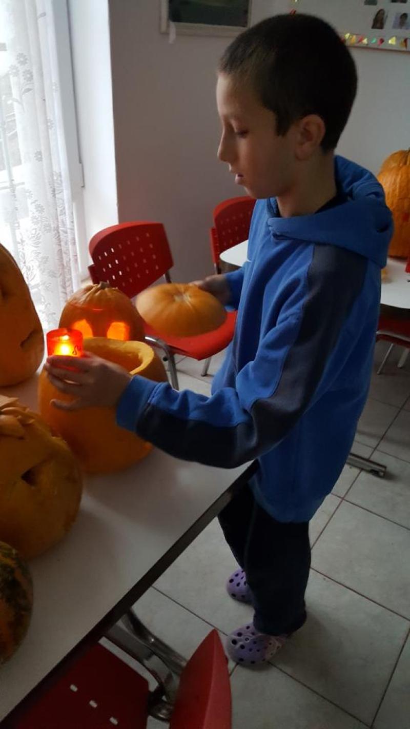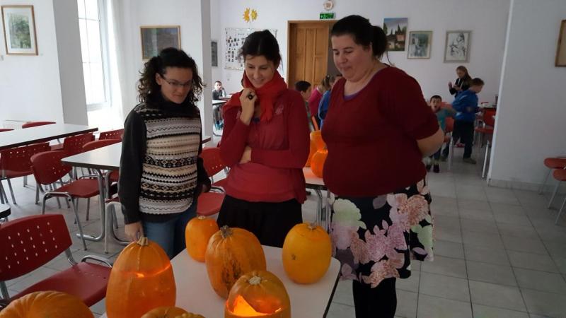 Mielőtt Zsobokon leesett volna az első hó, a Bethesda Gyermekotthon lakóival sikerült egy igazi őszbúcsúztató töklámpást készítő kézműves foglalkozást összehoznom. A hétvégére is bennmaradó nebulók nagy örömmel vágtak bele nemcsak a dísztökökbe, hanem a feladatba is. A végén az elkészült lámpásokat külön zsűri díjazta, mely zsűritagok között fellelhető volt a tavalyi zsoboki ösztöndíjas is, Ottucsák Melinda, aki az Ágoston Alapítvány önkénteseivel érkezett erre a hétvégére Zsobokra. A lámpásokat az otthon nyitott teraszára helyeztük el, hogy úgy világítsanak a sötétben, mint ahogy Isten várja tőlünk, hogy tiszta szívünk világítson a világba.