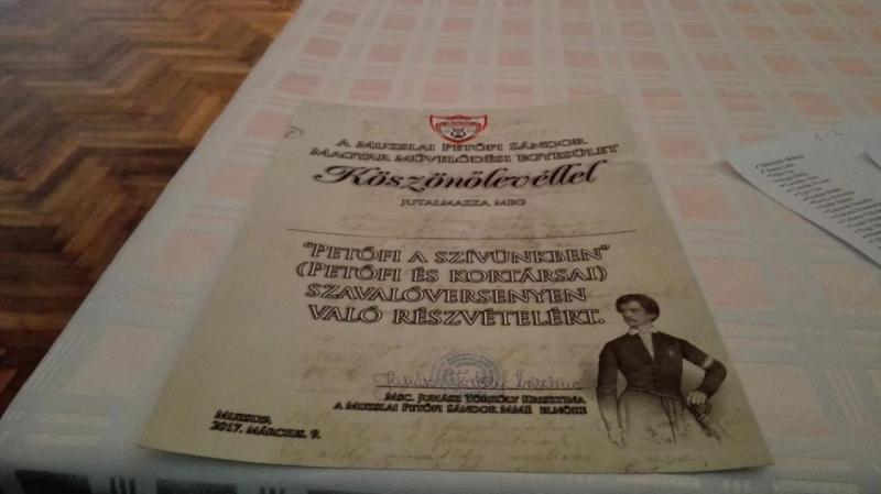 A Muzslai Petőfi Sándor Magyar Művelődési Egyesület idén is megtartotta hagyományos Petőfi-szavalóversenyét, melyre ezúttal hét környező településről — Tóbáról, Magyarcsernyéről, Magyarittabéről, Szentmihályról, Nagybecskerekről, Lukácsfalváról és Muzslyáról — 52 általános- és középiskolás szavaló nevezett be. Idén "Petőfi a szívünkben" (Petőfi és kortársai) elnevezéssel hirdették meg a versenyt, melyre rendhagyó módon a közismert versek mellett Petőfi kortársainak költeményeiből is választhattak a gyerekek. A gyerekek éltek is a lehetőséggel, és Petőfi Sándor versei mellett felcsendültek Arany János, Vajda János, Vörösmarty Mihály és Weöres Sándor költeményei is.