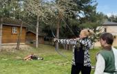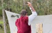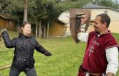 Vezetőjük Csámpai László beszélt nekünk a lovagrend értékrendjéről és a nyolc éve működő gyermek és ifjúsági közösség működéséről. A bemutató után kipróbálhattuk a különböző ősi fegyvereket és a magyar középkori hadviselésbe kóstolhattunk bele.