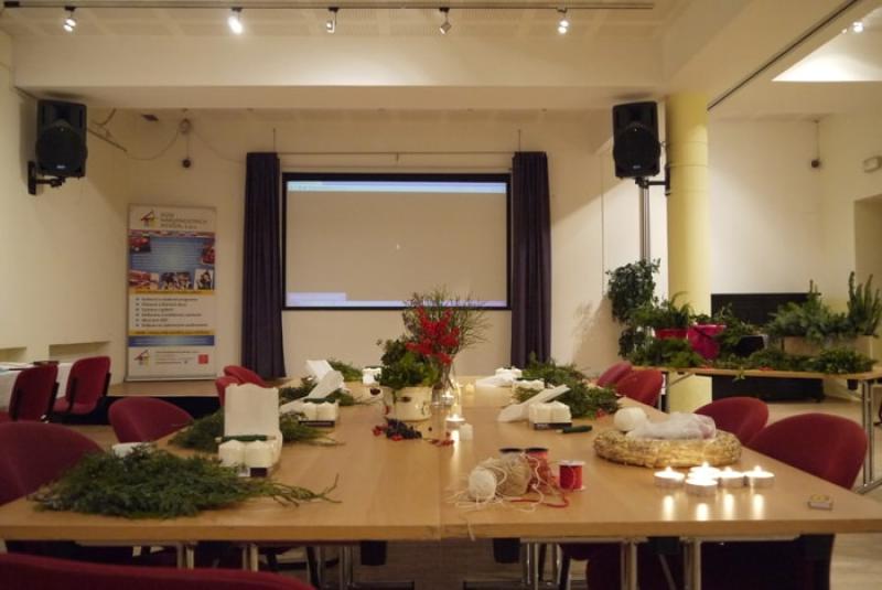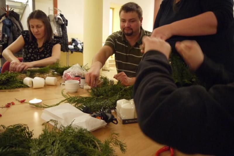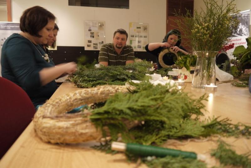 Az adventi műhely a prágai Nyitnikék néptánccsoport hagyományokat ápoló projektje. Célja a néphagyományok megértése és megélése, átadása a gyerekeknek és felnőtteknek egyaránt. A résztvevőknek idén is volt alkalmuk koszorút kötni Bohuniczky Annmária vezetésével, miközben a gyerekfoglalkozást a jelenlegi és egykori Petőfi ösztöndíjasok tartották.
