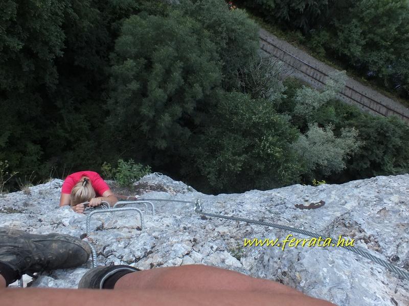 A helyi információs tábla szerint a ferrata egy XIII.sz.-i rom közelében indul a "Sárkány háza"(?) nevű barlang bejárata mellől. (A bejárat mellett jól látható a XIII. században épült őrtorony amit a tutajokon történő árumozgás ellenőrzésére építettek. A 95 m hosszú barlangnak egy enyhén emelkedő terme van, amelyben néhány sziklakád és egy patak látható. Kb. 20 m után a terem egy, enyhén díszített szűk, 50 méteres járattal folytatódik.) A ferrata-útban több függőleges és áthajló szakasz is található, a végén egy 25 m hosszú függőhíddal. Kezdőknek a szomszédos (Sonkolyos felé eső) ferrátát javaslom.