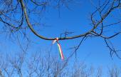 Petőfi Sándor Program ösztöndíjasaként az emléknap hajnalán, a kivégzések helyszínén és időpontjában egy szertartás keretében, többek között harangot kondítottam a kivégzettek emlékére. (Lásd a korábbi bejegyzésemet.) A harang függesztésére szolgáló nemzetiszín szalagot a helyén meghagyva, az azóta is a helyszínen emlékeztet erre az eseményre. A pontos helyszínét a téli Vártúra résztvevői ismerik, azonban a Várhídtól, a vesztőhely felé haladva nem nehéz rábukkanni. (Lehet, hogy nem a legpontosabb helyen mutatja az általam számított eredeti vesztőhely helyszínét, de a rendelkezésemre álló adatokból és a tehetségemből erre futotta...).